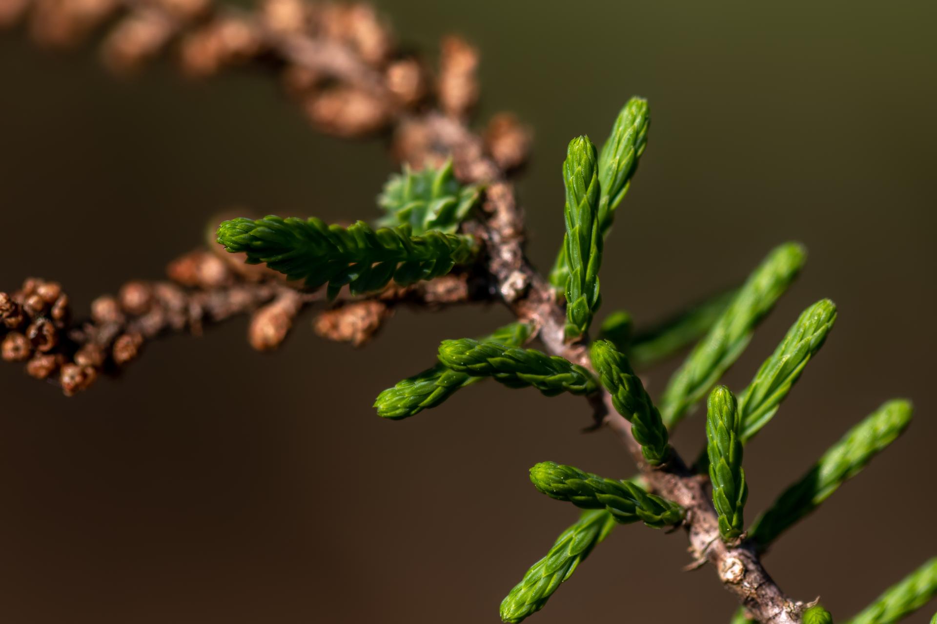 The needle-likeleavesare1⁄2to3⁄4inch (1.3 to 1.9cm) long and are simple, alternate, green and linear, with entire margins. In autumn, the leaves turn yellow or copper red.[9]The bald cypress drops its needles each winter and then grows a new set in spring.[7]