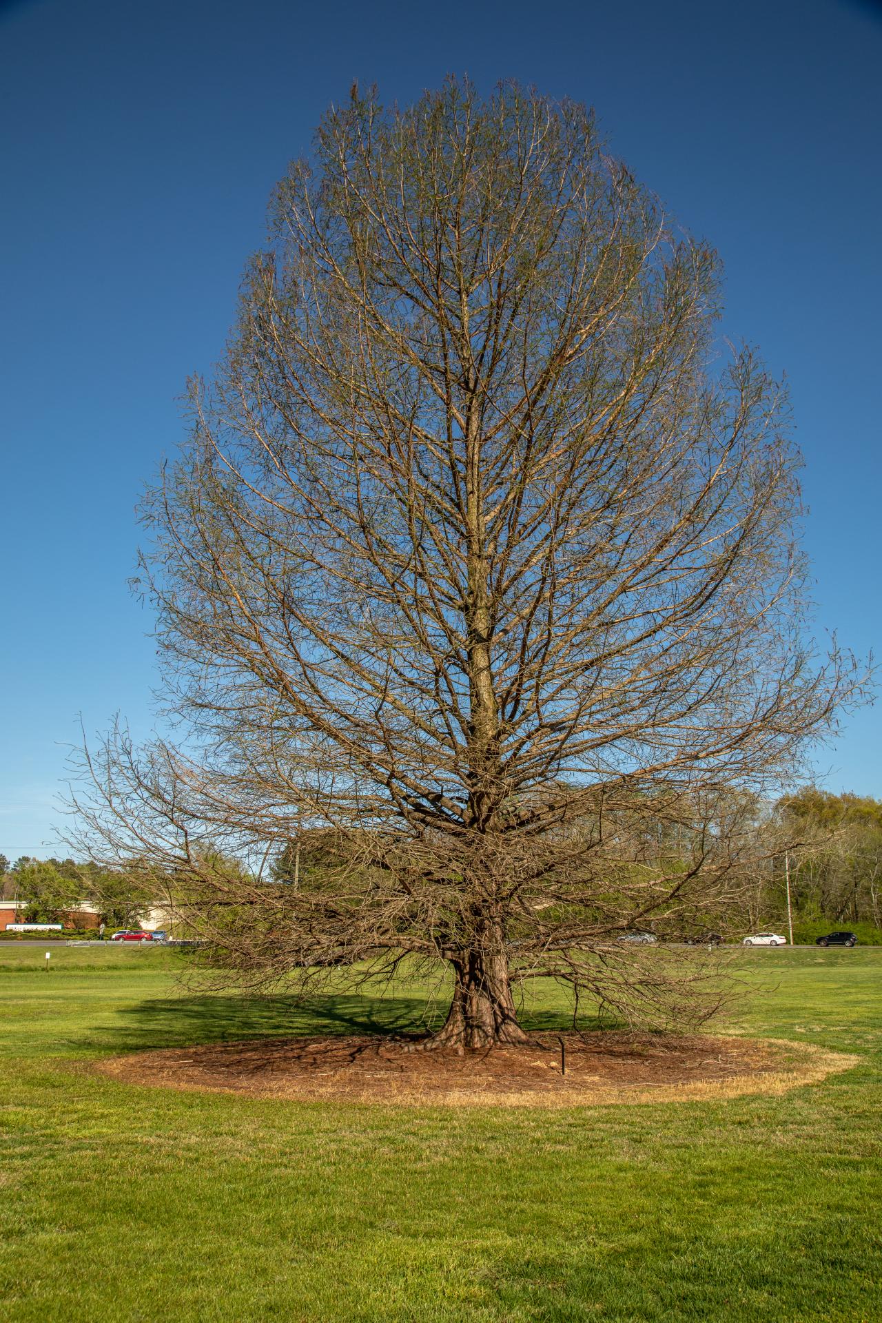 Taxodium distichum(bald cypress)is adeciduousconiferin the familyCupressaceae. It is native to the southeastern United States. Hardy and tough, this tree adapts to a wide range of soil types, whether wet, dry, or swampy. It is noted for the russet-red fall color of its lacy needles.