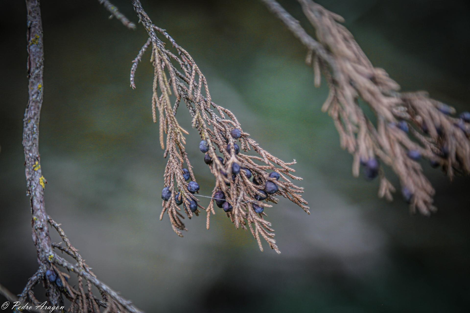 Juniperus virginiana is a dense slow-growing coniferous evergreen tree that may never become more than a bush on poor soil, but is ordinarily from 5–20 metres (16–66 feet) tall, with a short trunk 30–100 centimetres (12–39 inches) in diameter, rarely to 27 m (89 ft) in height and 170 cm (67 in) in diameter. The oldest tree reported, from West Virginia, was 940 years old.[8] The bark is reddish-brown, fibrous, and peels off in narrow strips. The leaves are of two types; sharp, spreading needle-like juvenile leaves 5–10 millimetres (3⁄163⁄8 in) long, and tightly adpressed scale-like adult leaves 2–4 mm (1⁄163⁄16 in) long; they are arranged in opposite decussate pairs or occasionally whorls of three. The juvenile leaves are found on young plants up to 3 years old, and as scattered shoots on adult trees, usually in shade. The seed cones are 3–7 mm (1⁄81⁄4 in) long, berry-like, dark purple-blue with a white wax cover giving an overall sky-blue color (though the wax often rubs off); they contain one to three (rarely up to four) seeds, and are mature in 6–8 months from pollination. The juniper berry is an important winter food for many birds, which disperse the wingless seeds. The pollen cones are 2–3 mm (1⁄161⁄8 in) long and 1.5 mm (1⁄16 in) broad, shedding pollen in late winter or early spring. The trees are usually dioecious, with pollen and seed cones on separate trees,[5][6][7] yet some are monoecious.