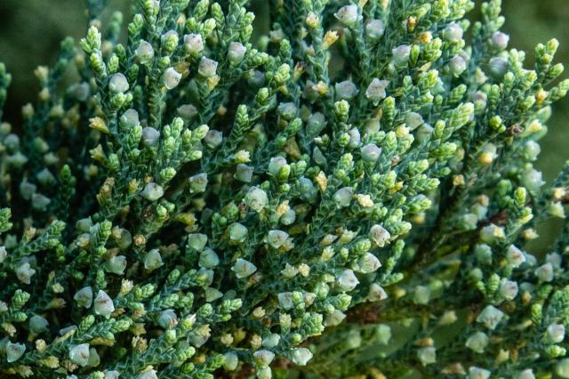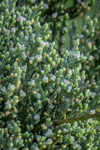 The pollen of Juniperus virginiana var. virginiana is a known allergen. The nominate variety is native to Eastern North America, north of Mexico, with the pollen releasing at various points in the spring, variable by latitude and elevation.[20]