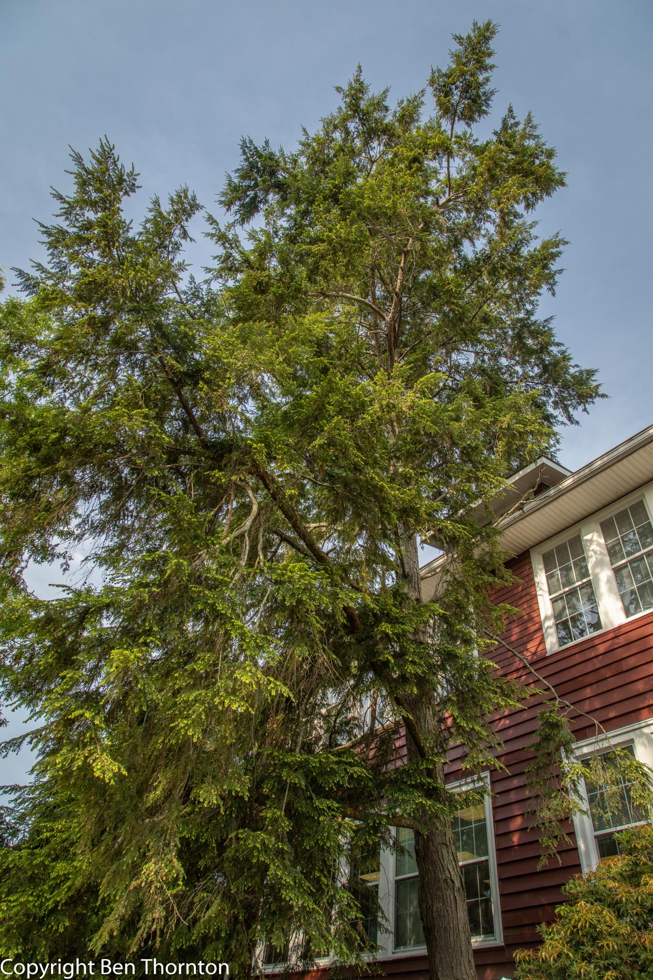 Tsuga canadensis, also known as eastern hemlock,[3] eastern hemlock-spruce,[4] or Canadian hemlock, and in the French-speaking regions of Canada as pruche du Canada, is a coniferous tree native to eastern North America. It is the state tree of Pennsylvania.[5] Eastern hemlocks are widespread throughout much of the Great Lakes region, the Appalachian Mountains, the Northeastern United States, and Maritime Canada. They have been introduced in the United Kingdom and mainland Europe, where they are used as ornamental trees.