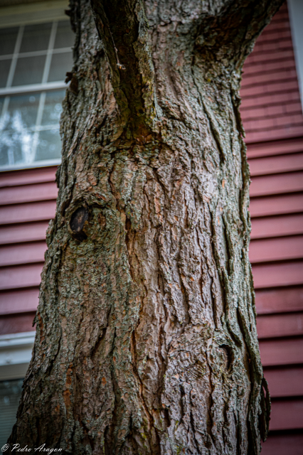 The eastern hemlock grows well in shade and is very long lived, with the oldest recorded specimen, found in Tionesta, Pennsylvania, being at least 554 years old.[7] The tree generally reaches heights of about 31 m (102 ft),[5] but exceptional trees have been recorded up to 53 m (174 ft).[8] The diameter of the trunk at breast height is often 1.5 m (4 ft 11 in), but again, outstanding trees have been recorded up to 1.75 m (5 ft 9 in).[9] The trunk is usually straight and monopodial, but very rarely is forked.[10] The crown is broadly conic, while the brownish bark is scaly and deeply fissured, especially with age.[5] The twigs are a yellow-brown in color with darker red-brown pulvini, and are densely pubescent. The buds are ovoid in shape and are very small, measuring only 1.5 to 2.5 mm (0 to 1⁄8 in) in length. These are usually not resinous, but may be slightly so.[5][10]