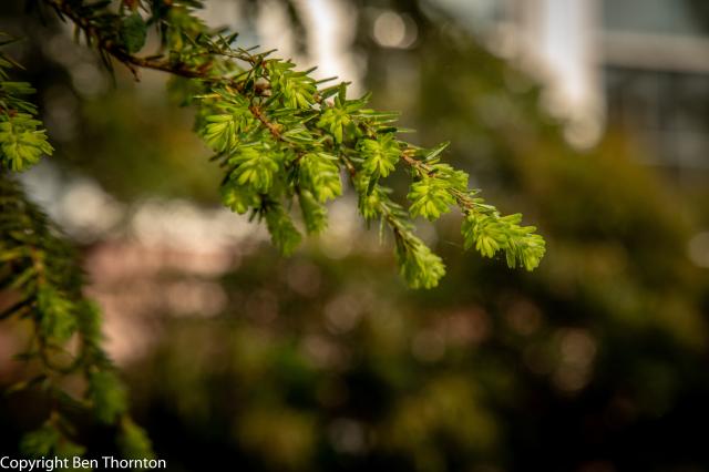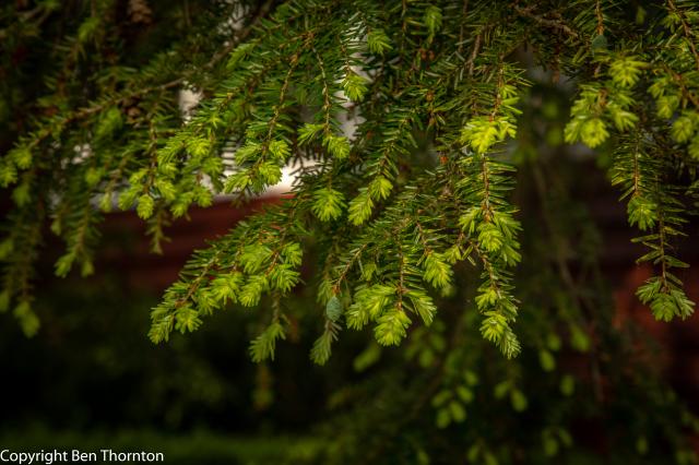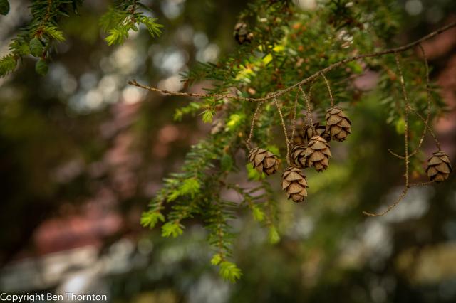 Eastern hemlocks are long lived trees, with many examples living for more than 500 years. They can grow to heights of more than 30 metres (100 ft), and are tolerant of shade, moist soil, and slopes. Hemlock wood is used in construction, and for railroad ties. Historically its bark was an important source of tannin for the leather tanning industry.[6] Eastern hemlocks are popular as ornamental trees, thanks to their tolerance of a wide variety of soil and light conditions, as well as their characteristic drooping branches.