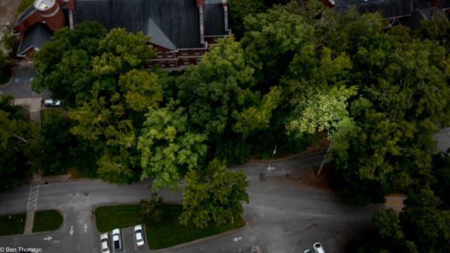 • Shera-Blair Red Oak – This majestic red oak tree is located on Shelby Street in the South Frankfort neighborhood in Franklin CountyKentucky, and is the largest red oak tree in the oldest neighborhood in FrankfortKentucky. It is in the backyard of a house built in 1914 by architect Arthur Raymond Smith, who at one time worked for D.X. Murphy & Bros., famed architects that designed the twin spires at Churchill Downs. The circumference at breast height is 6.4 m (21 ft 0 in), with the trunk reaching higher than 12 m (40 ft) before the branches begin and an estimated height of 40 m (130 ft).
