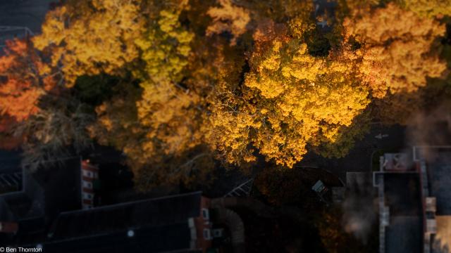 In spring, the young leaves are delicate, silvery pink, and covered with a soft blanket-like down. The petioles are short, and the clustered leaves close to the ends of the shoots are pale green and downy, resulting in the entire tree having a misty, frosty look. This condition continues for several days, passing through the opalescent changes of soft pink, silvery white, and finally, yellow green.[5][7] The leaves grow to be 127 to 216 millimetres (5–8+1⁄2 inches) long and 7 to 11.5 centimetres (2+3⁄44+1⁄2 in) wide and have a deep glossy green upper surface. They usually turn red or brown in autumn, but depending on climate, site, and individual tree genetics, some trees are nearly always red, or even purple in autumn. Some dead leaves may remain on the tree throughout winter until very early spring. The lobes can be shallow, extending less than halfway to the midrib, or deep and somewhat branching.
