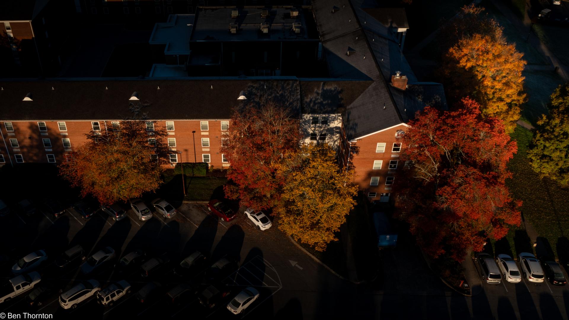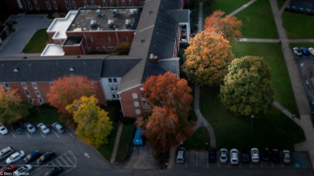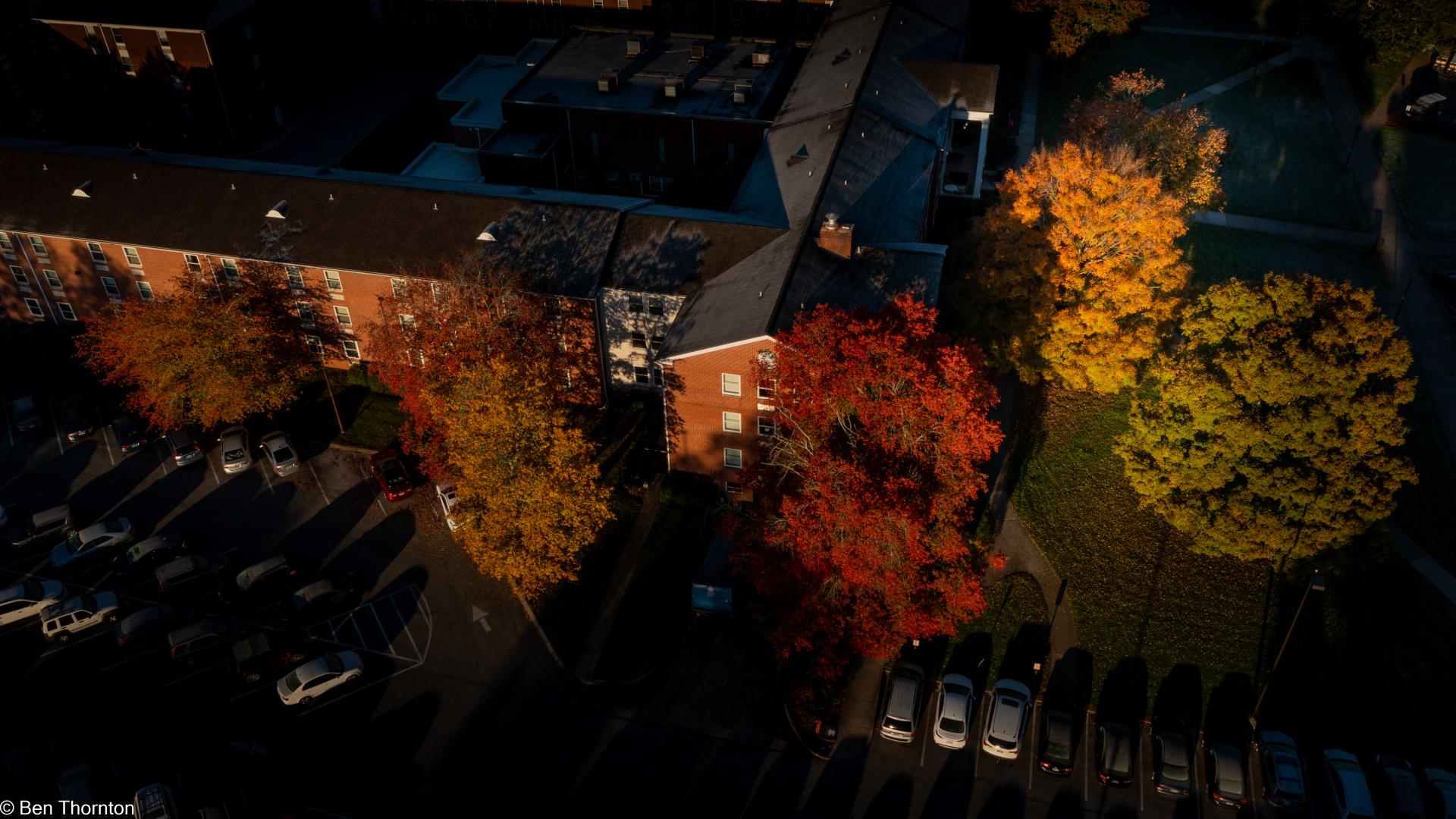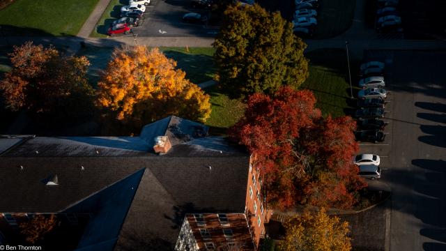 The LEAVES are deciduous, up to 20 cm (7.9 in) long and wide,[8] palmate, with five lobes and borne in opposite pairs. The basal lobes are relatively small, while the upper lobes are larger and deeply notched. In contrast with the angular notching of the SILVER MAPLE, however, the notches tend to be rounded at their interior. The fall color is often spectacular, ranging from bright yellow on some trees through orange to fluorescent red-orange on others. Sugar maples also have a tendency to color unevenly in fall. In some trees, all colors above can be seen at the same time. They also share a tendency with RED MAPLES for certain parts of a mature tree to change color weeks ahead of or behind the remainder of the tree. The leaf buds are pointy and brown-colored. The recent year's growth twigs are green, and turn dark brown.[CITATION NEEDED]