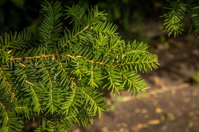 Taxus × media is a hybrid designation for a large number of shrubby, often wide-spreading crosses of English yew (Taxus baccata) and Japanese yew (Taxus cuspidata). These hybrids are noted for combining the ornamental excellence of English yew with the winter hardiness of Japanese yew. Although primarily resembling T. cuspitata in appearance, the various hybrid cultivars can vary considerably in size and character. Height ranges from 2-20' tall depending on the cultivar. Two ranked, pointed, oblong to needle-like, olive to dark green leaves are attractive year round. Bark is scaly brown. Plants are dioecious (separate male and female plants). Female plants produce berry-like cones made up of a single seed surrounded by a red, fleshy structure called an aril. The aril is formed by two fused, modified scale leaves.