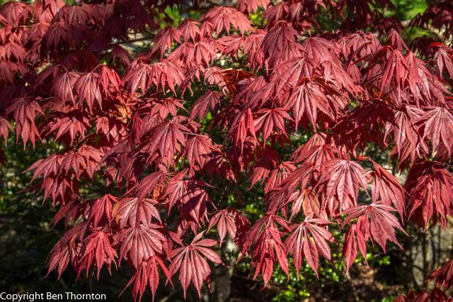 In their natural habitat, they grow in the understory; most cultivars prefer part shade, especially in hotter climates, but they will also grow in heavy shade. Some cultivars will tolerate full sun, more so at higher latitudes and less at lower latitudes; red, purple-red, black-red, bronze, and some dark green cultivars are generally more full sun tolerant. Variegated white, cream, yellow, yellow-orange, or light green cultivars mostly require shade protection. Almost all are adaptable and blend well with companion plants. The trees are particularly suitable for borders and ornamental paths because the root systems are compact and not invasive. Many varieties of Acer palmatum are successfully grown in containers.[15][16] Trees are prone to die during periods of drought and prefer consistent water conditions; more established trees are less prone to drought. They benefit from being mulched yearly with a 2" layer of aged organic matter mulch, covering at least beyond the entire drip-line of the tree, but not allowed to touch the bark at the base of the tree. Moderate to well-drained soil is essential as they will not survive in poorly drained waterlogged soil. Trees do not require or appreciate heavy fertilization and should only be very lightly fertilized, preferably using polymer-coated slow-release fertilizer with a 3 to 1 ratio of nitrogen to phosphorus respectively, or preferably a bio-solid based fertilizer like a 6-4-0 N-P-K. High Nitrogen lawn fertilizer should be avoided in the immediate vicinity of these trees, as excessive nitrogen can cause overly vigorous growth that is not consistent with the natural form of the tree, and is prone to dieback and pathogens.[citation needed]