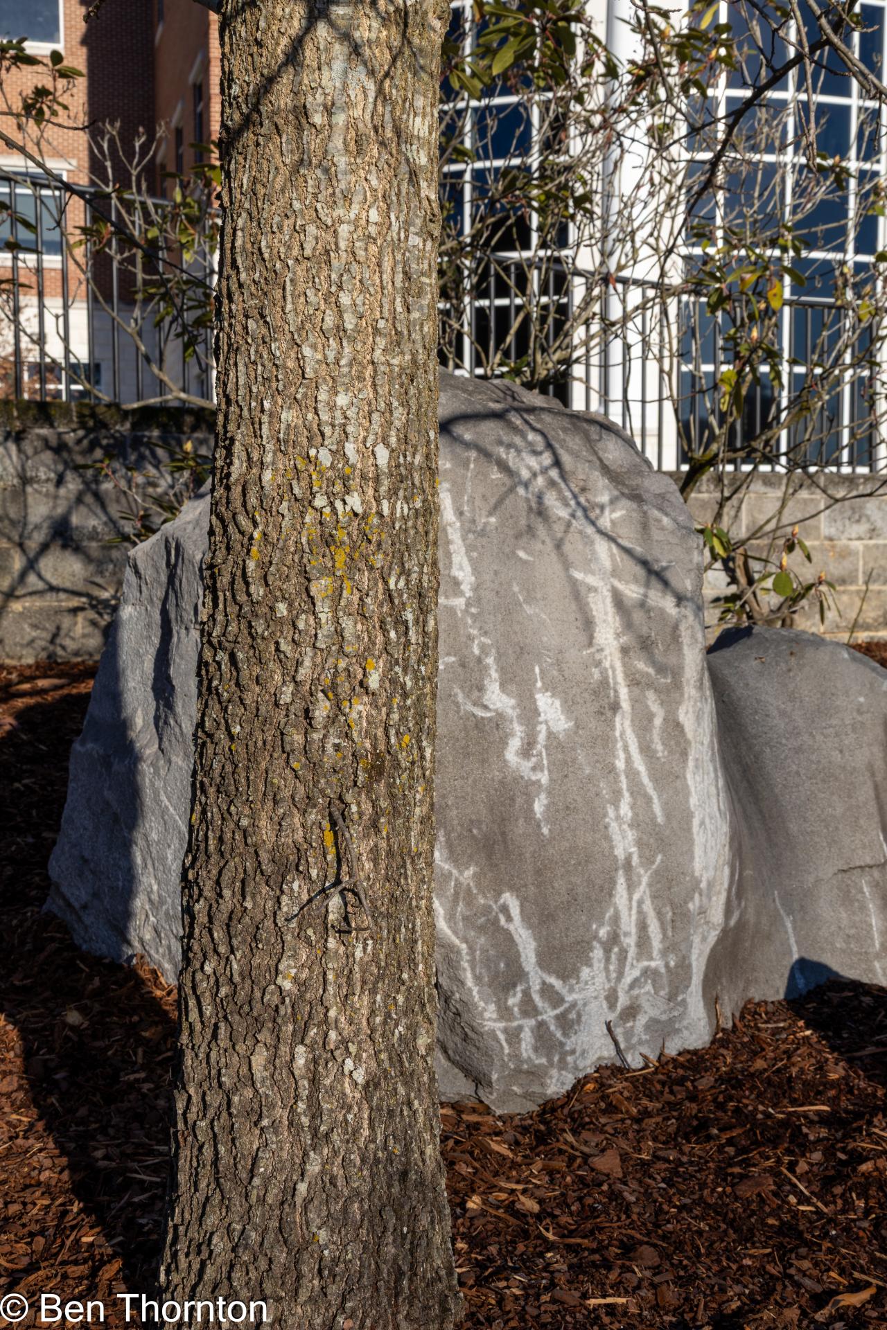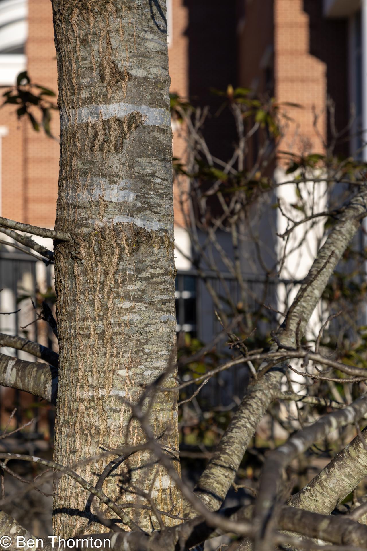 Northern red oak is easy to recognize by its bark, which features ridges that appear to have shiny stripes down the center. A few other oaks have bark with this kind of appearance in the upper tree, but the northern red oak is the only tree with the striping all the way down the trunk.[6]