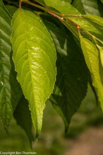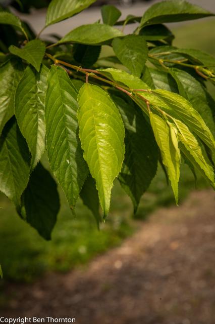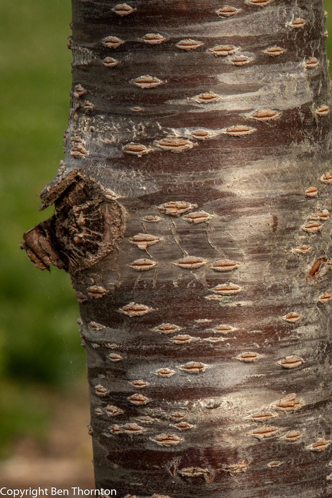 This tree has attractive light to dark gray bark with prominent lenticels that adds winter interest to the garden. The spring flowers emerge before the leaves and maybe single, double, or semi-double. The leaves appear narrower and shorter than another cultivar known as 'Mount Fuji.' 'Akebono' has small black drupes that are attractive to birds during the winter months.