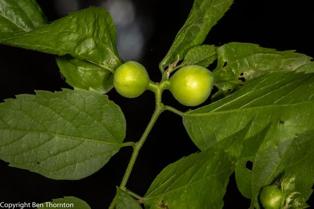 The fruit is a fleshy, oblong drupe1⁄4 to 3⁄8 in (0.64 to 0.95 cm) long, tipped with the remnants of style, dark purple when ripe. It is borne on a slender stem and ripens in September and October. It remains on the branches during winter.[6] The endocarp contains significant amounts of biogenic carbonate that is nearly pure aragonite.[8]