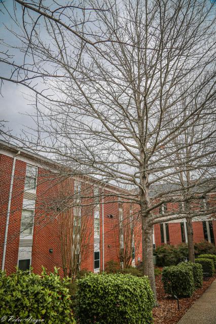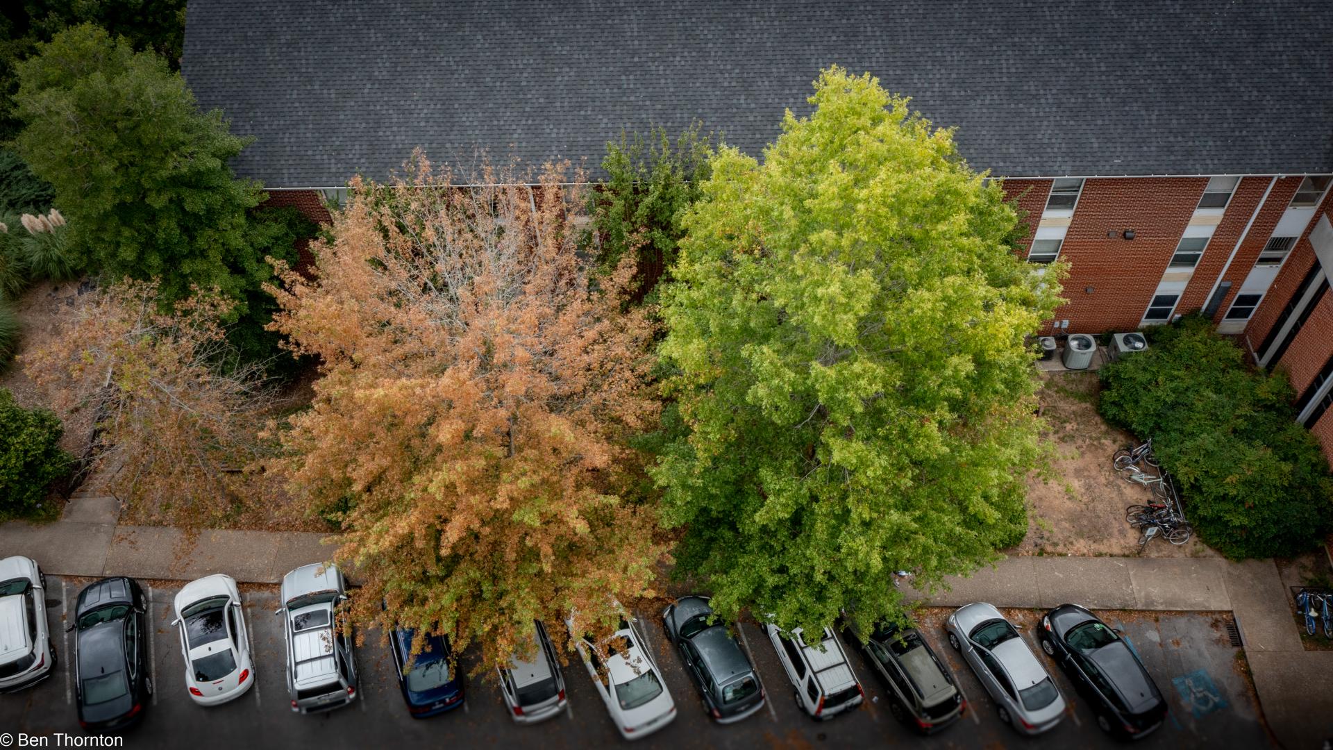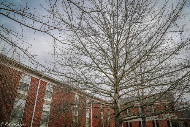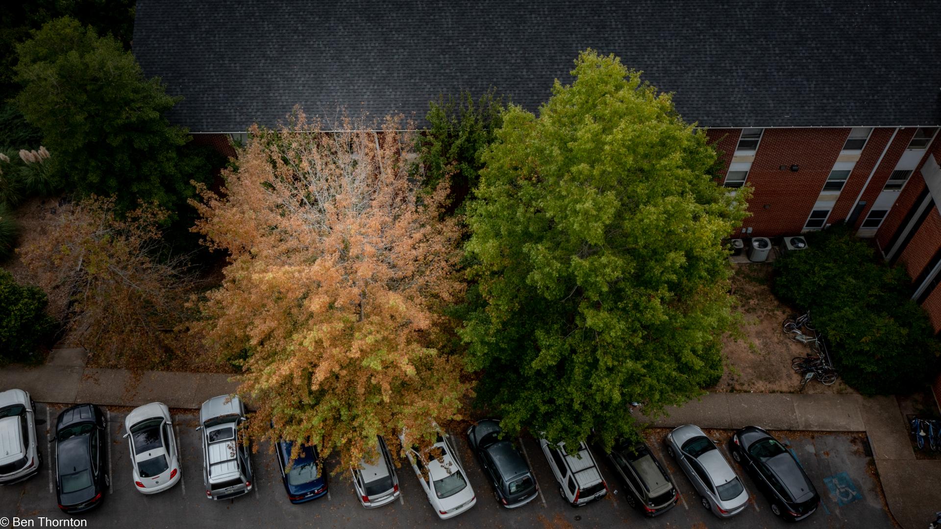 A characteristic shared by a few other oak species, and also some beeches and hornbeams, is the retention of leaves through the winter on juvenile trees, a natural phenomenon referred to as marcescence. Young trees under 6 m (20 ft) are often covered with leaves year-round, though the leaves die in the fall, remaining attached to the shoots until the new leaves appear in the spring. As with many other oak species, dead pin oak branches stay on the tree for many years.[6][7]
