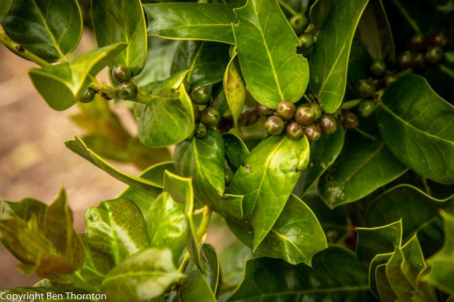 Ilex cornuta is dioecious, meaning the flowers found on the shrub are either female or male. Male and female flowers are not found together on the same plant, so the plant is not self-fertile, it takes a male and a female plant to reproduce.[9]