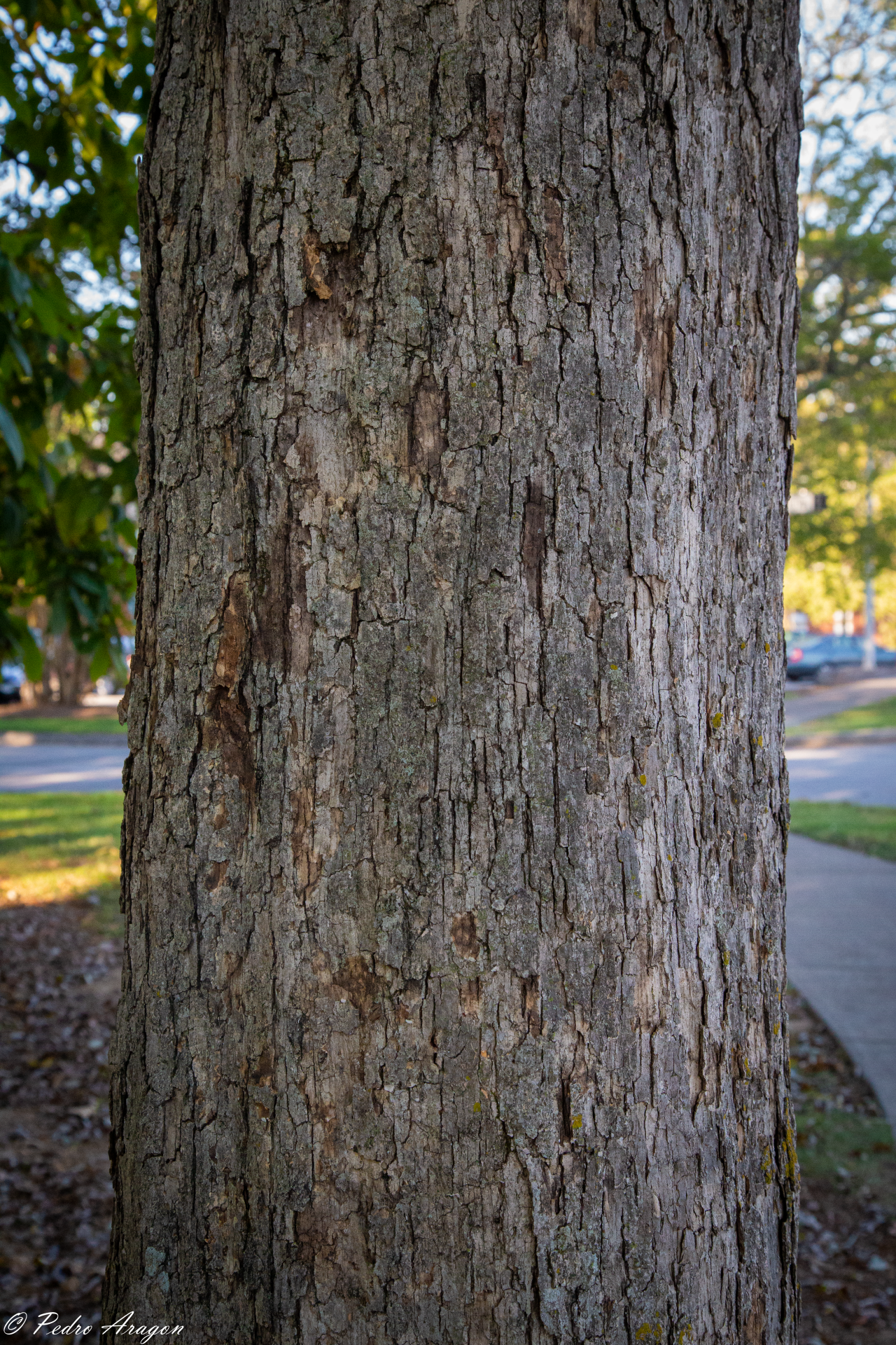 Chinkapin oak is also sometimes confused with the relatedchestnut oak(Quercus montana), which it closely resembles. However, unlike the pointed teeth on the leaves of the chinkapin oak, chestnut oak leaves generally have rounded teeth. The two species have contrasting kinds of bark: Chinkapin oak has a gray, flaky bark very similar to that ofwhite oak(Q. alba) but with a more yellow-brown cast to it (hence the occasional name yellow oak for this species), while chestnut oak has dark, solid, deeply ridged bark. The chinkapin oak also has smaller acorns than the chestnut oak or another similar species, theswamp chestnut oak(Q. michauxii), which have some of the largest acorns of any oaks.[1]
