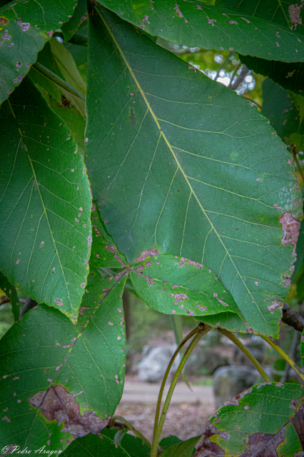 Common foliage diseases include leaf mildew and witches' broom (Microstroma juglandis), leaf blotch (Mycosphaerella dendroides), and pecan scab (Cladosporium effusum). Mockernut hickory is host to anthracnose (Gnomonia caryae).
