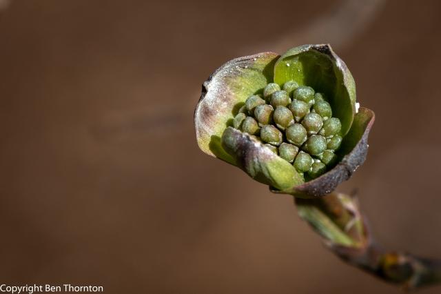 Cornus florida is easily propagated by seeds, which are sown in the fall into prepared rows of sawdust or sand, and emerge in the spring. Germination rates for good clean seed should be near 100% if seed dormancy is first overcome by cold stratification treatments for 90 to 120 days at 4 °C (39 °F).[11]: 100–102 [18] Flowering dogwood demonstrates gametophytic self-incompatibility, meaning that the plants can't self-fertilize. This is important for breeding programs as it means that it is not necessary to emasculate (remove the anthers from) C. florida flowers before making controlled cross-pollinations. These pollinations should be repeated every other day, as the flowers must be cross-pollinated within one or two days of opening for pollinations to be effective.[19]