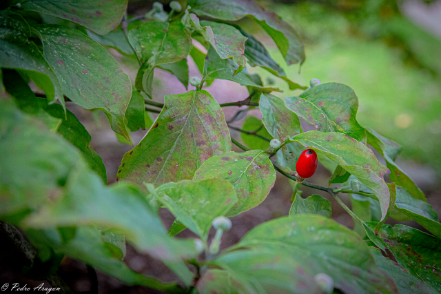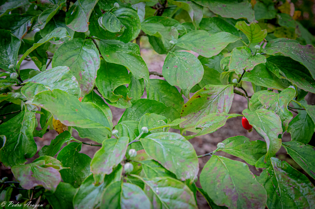 The fruit is a cluster of two to ten separate drupes, (fused in Cornus kousa), each 10–15 mm (0.39–0.59 in) long and about 8 mm (0.31 in) wide, which ripen in the late summer and the early fall to a bright red, or occasionally yellow with a rosy blush. They are an important food source for dozens of species of birds, which then distribute the seeds. They are also a larval host plant for several moth varieties, including Eudeilinia herminiata, the dogwood thyatirid mothAntispila cornifoliella, the stinging rose moth, the grand arches moth,[6] the pecan bark borer,[7] the dogwood borer,[8] the rosaceous leaf roller, the diamondback epinotia mothspring azures,[9] cecropia moths,[10] and the Io moth. While not poisonous to humans, the fruit is extremely sour and unpleasant-tasting.[citation needed] Flowering dogwood is monoecious, meaning the tree has both male and female flowers, and all trees will produce fruit.