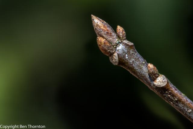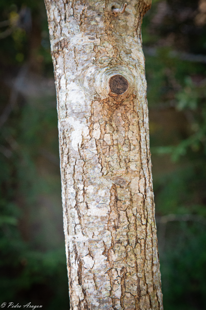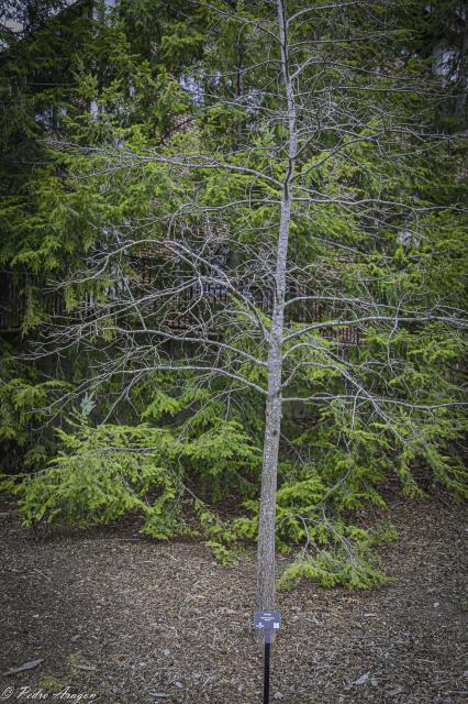 A characteristic shared by a few other oak species, and also some beeches and hornbeams, is the retention of leaves through the winter on juvenile trees, a natural phenomenon referred to as marcescence. Young trees under 6 m (20 ft) are often covered with leaves year-round, though the leaves die in the fall, remaining attached to the shoots until the new leaves appear in the spring. As with many other oak species, dead pin oak branches stay on the tree for many years.[6][7]