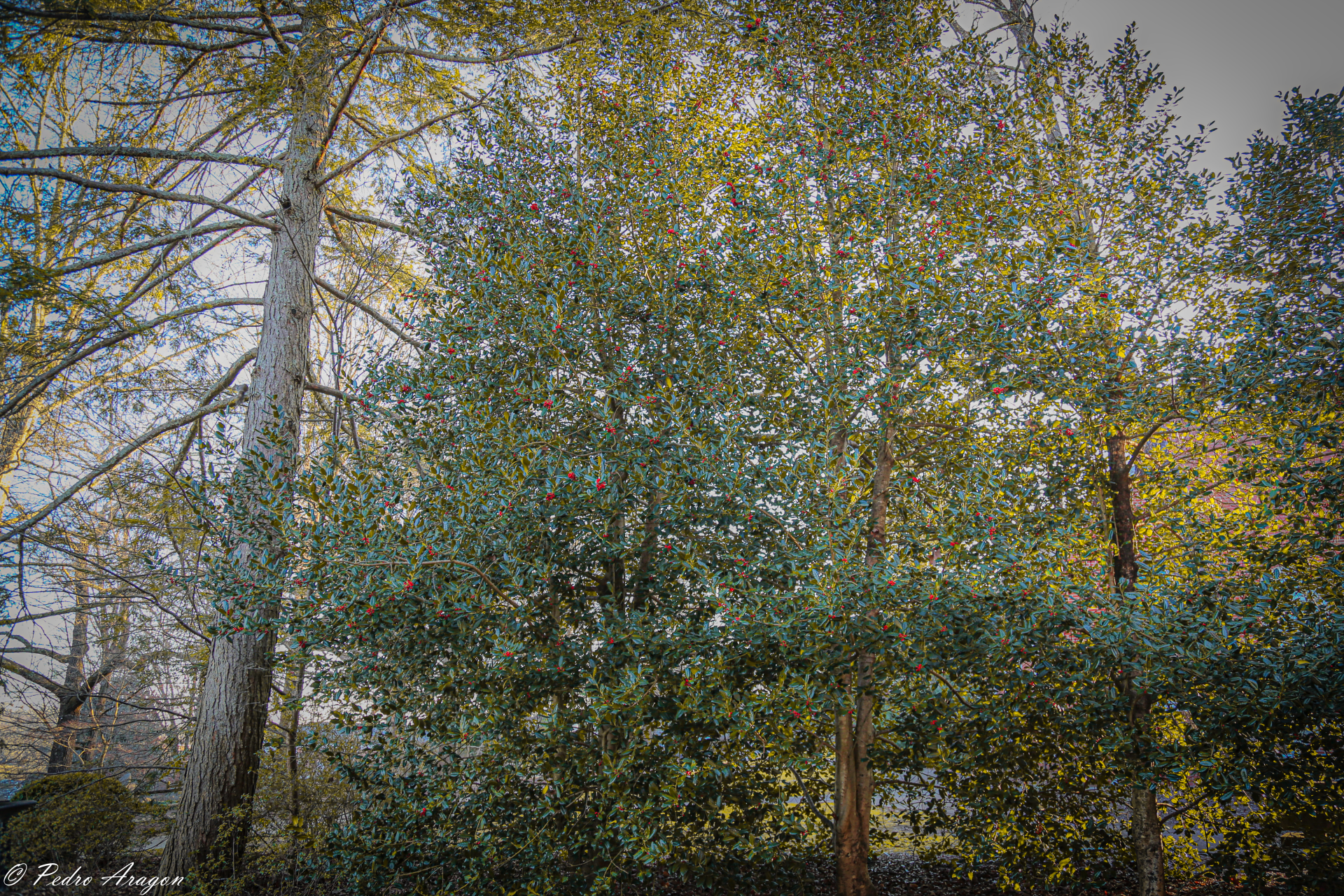 'Nellie R. Stevens’ holly is a woody, broadleaf evergreen tree or shrub in the holly family (Aquifoliaceae). It is a hybrid cultivar of I. aquifolium and I. cornuta, quickly matures to a height of 15 to 30 feet and a width of 8 to 25 feet and is a heavy producer of bright red berries.