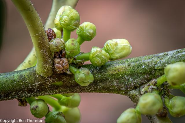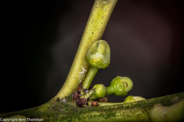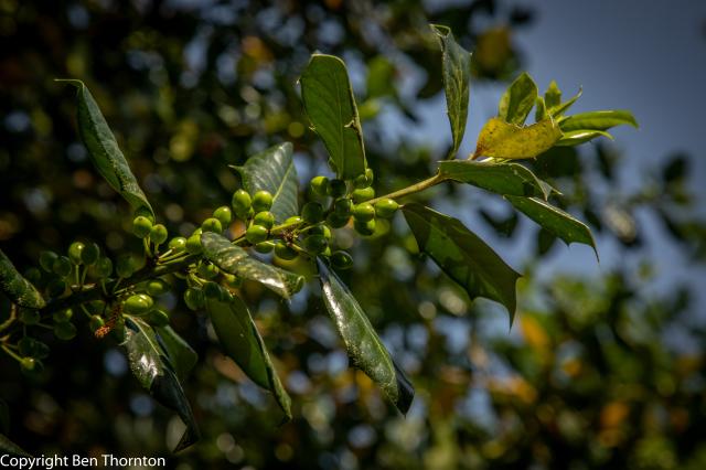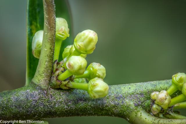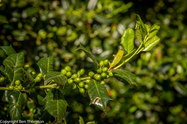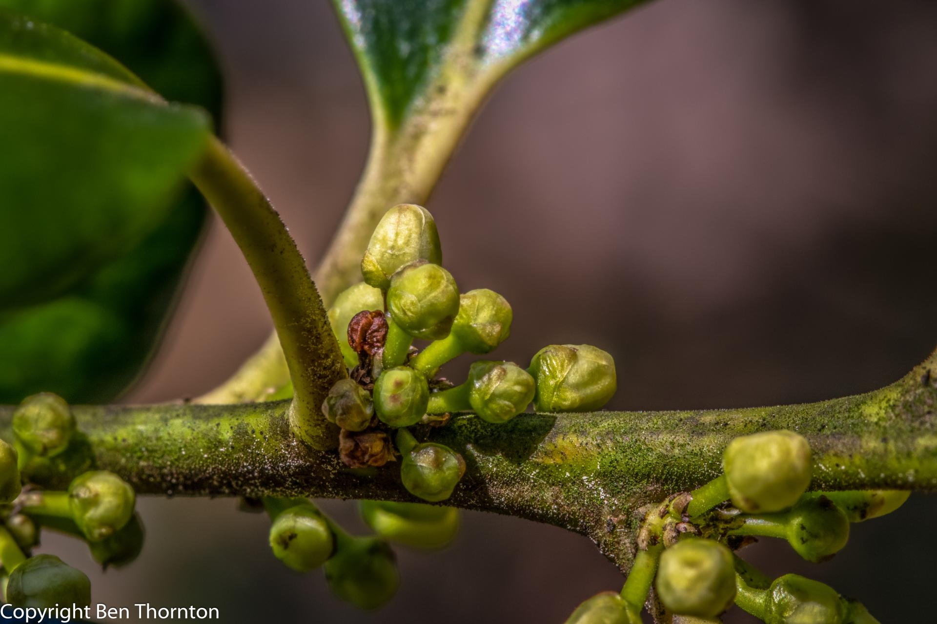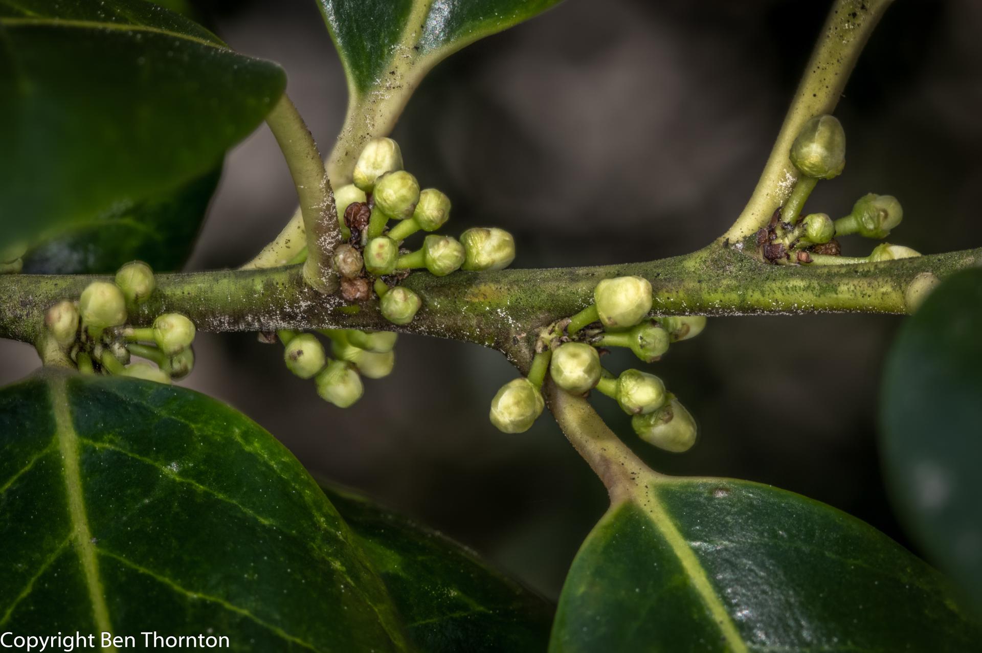 Hollies are dioecious plants, meaning there are separate male and female plants. Typically, for the female plant to bear fruit, both male and female plants that bloom at the same time must be present. ‘Nellie R. Stevens’ is a female plant, yet it produces some fruits without a male pollinator. However, Ilex cornuta and 'Edward J. Stevens' are male hollies that are good pollenizers. The small flowers that appear in spring are attractive to bees and other pollinators.