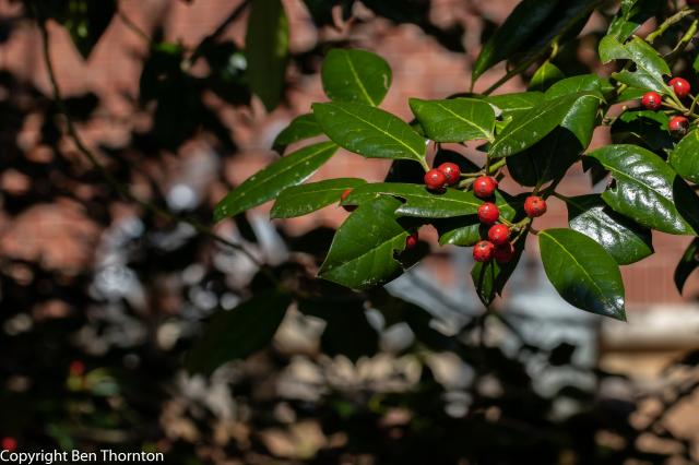 Use this plant as a specimen or take advantage of its dense, prickly foliage for use as a barrier, hedge, or screen planting. It is excellent in a woodland garden or as part of a foundation planting. The showy red fruits add color high in the back of a border. A heavy display of showy red berries makes for great winter interest in any garden.