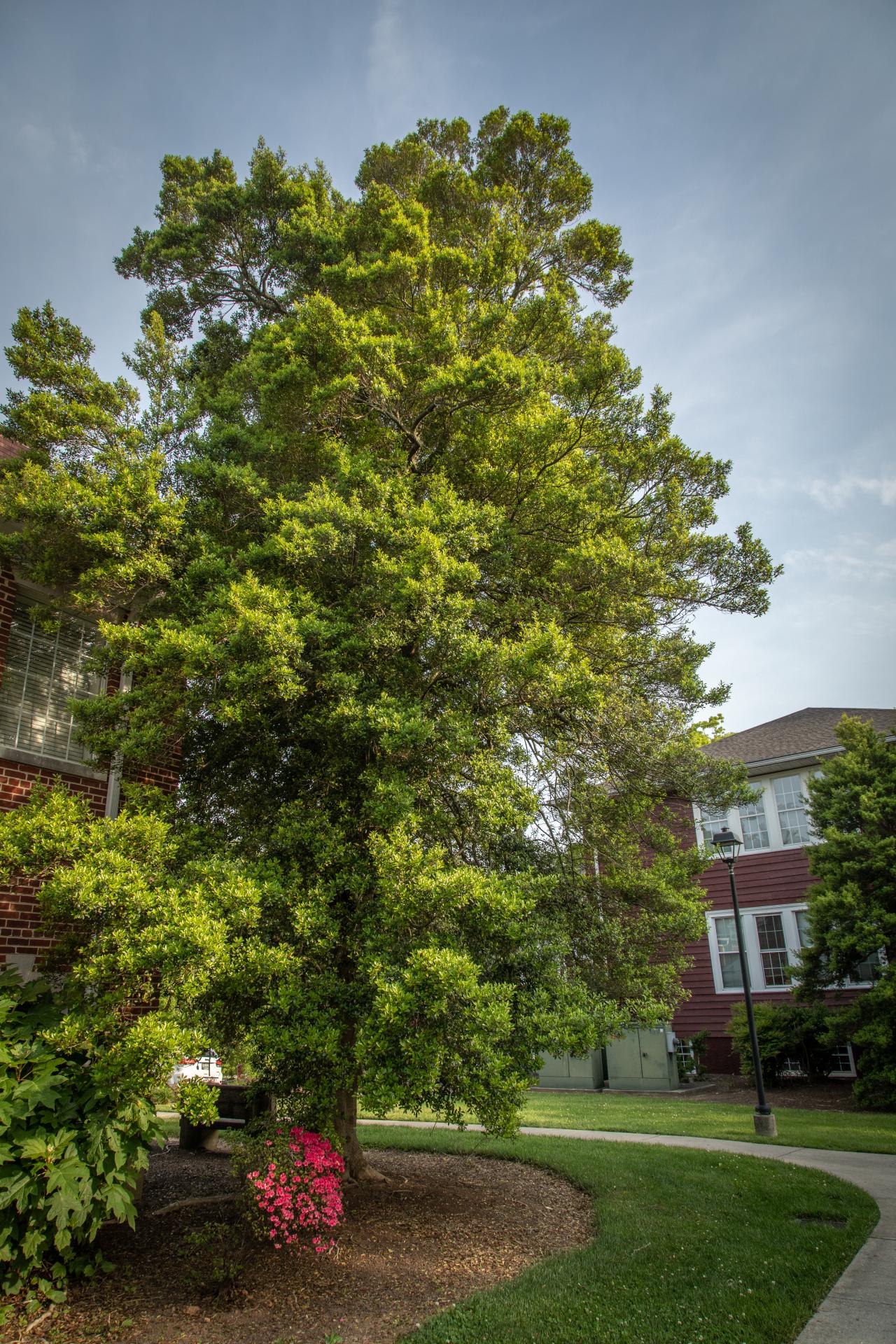 Foster holly is the common name attached to five different interspecific hybrids (Ilex cassine x Ilex opaca) introduced into cultivation in the 1950s by E. E. Foster of Foster Nursery in Bessemer, Alabama. Of the five original clones, #1 and #5 are no longer available in commerce, #4 is a male which is uncommonly available (female Foster hollies do not require a male pollinator for fruit development) and #2 and #3 are female plants which are commonly available but are so similar in appearance as to be virtually indistinguishable. Although #2 is by far the most common female clone, nurseries sometimes sell the clones today as male or female Foster hollies without reference to clonal numbers. Foster #2 hollies are currently growing in the Hedge Display at the Kemper Center for Home Gardening. Foster #2 is a small to medium-sized, broadleaf evergreen tree with a dense, upright, pyramidal habit. It typically grows to a mature height of 20-30' tall with a spread of 10-15' unless pruned otherwise. Features glossy, dark olive green, elliptic to obovate, evergreen leaves (2-3" long). Each leaf has 1-5 well-spaced, tiny, spiny, marginal teeth per side. Small white flowers bloom in late spring. Flowers are followed in fall by an abundant and showy crop of bright red berry-like drupes which persist throughout the winter.