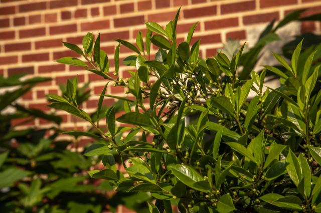 Potential insect problems include holly leaf miner, spittlebugs, spider mites, whitefly and scale. Potential disease problems include leaf spot, leaf rot, tar spot and powdery mildew. Plants are also susceptible to leaf drop, leaf scorch and chlorosis (yellowing of leaves in high pH soils).