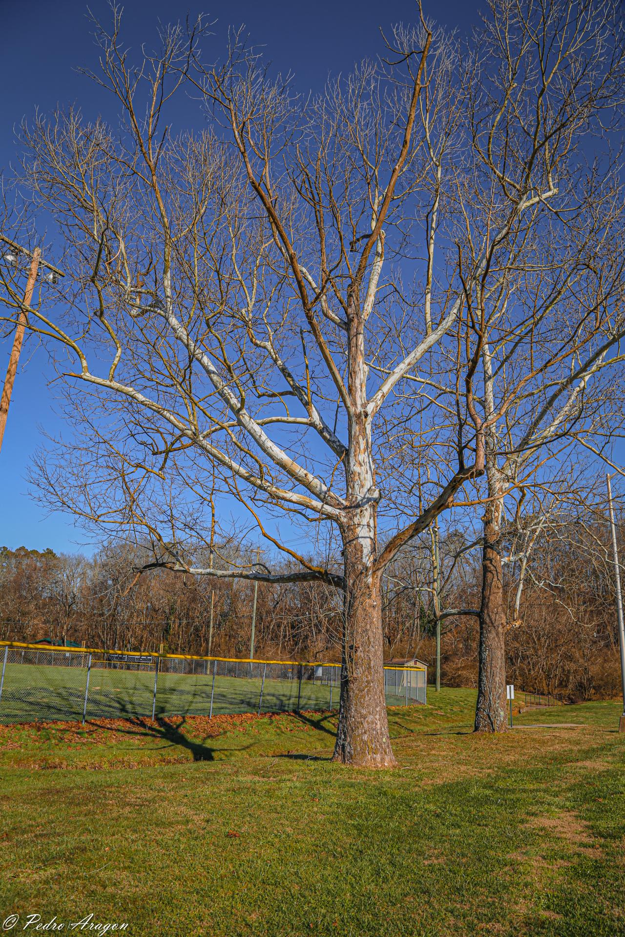 The sycamore tree is often divided near the ground into several secondary trunks, very free from branches. Spreading limbs at the top make an irregular, open head. Roots are fibrous. The trunks of large trees are often hollow.