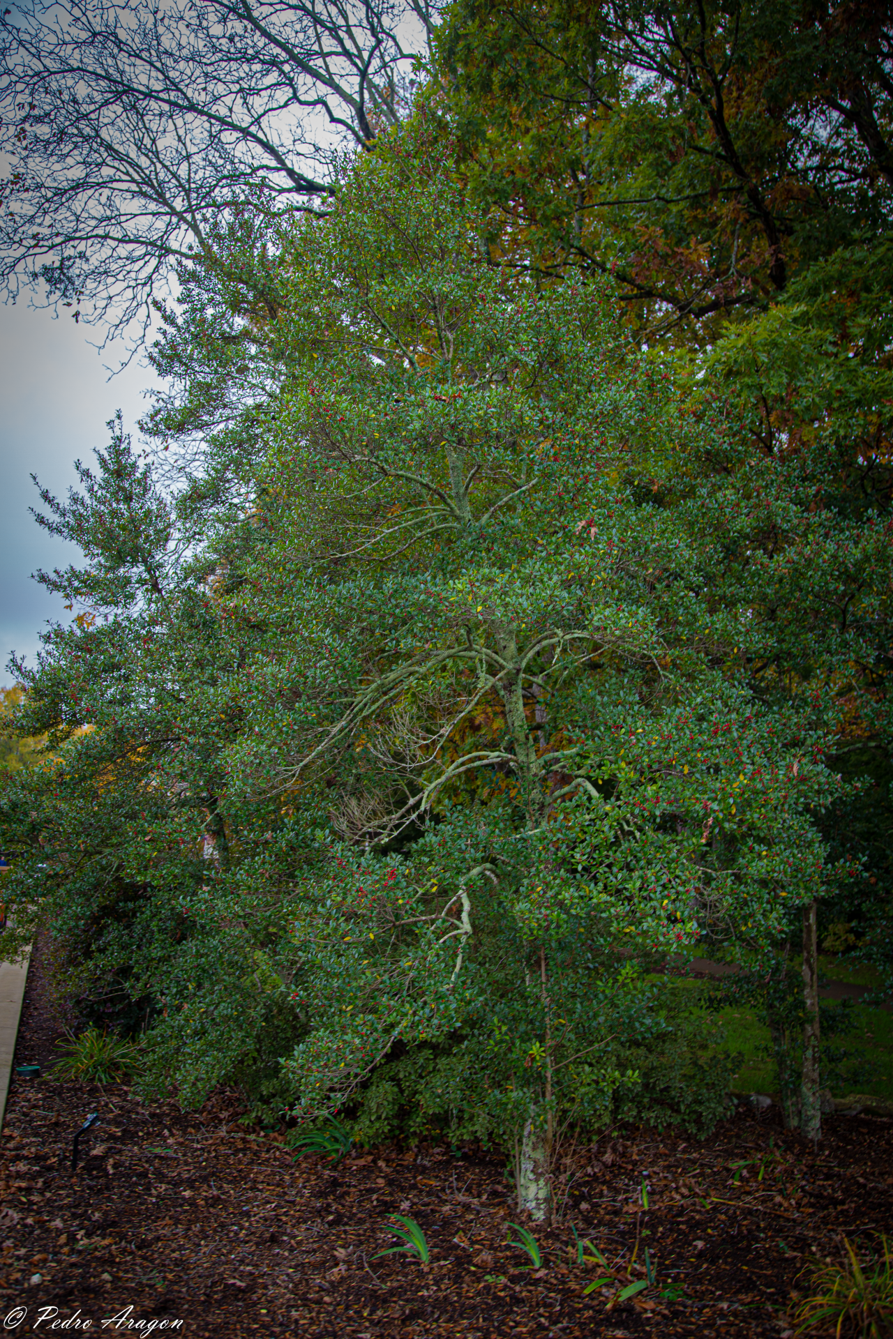 Genus name comes from the Latin name Quercus ilex for holm oak in reference to the foliage similarities (holm oak and many of the shrubs in the genus Ilex have evergreen leaves).