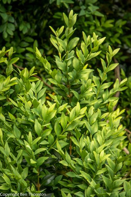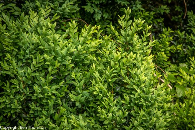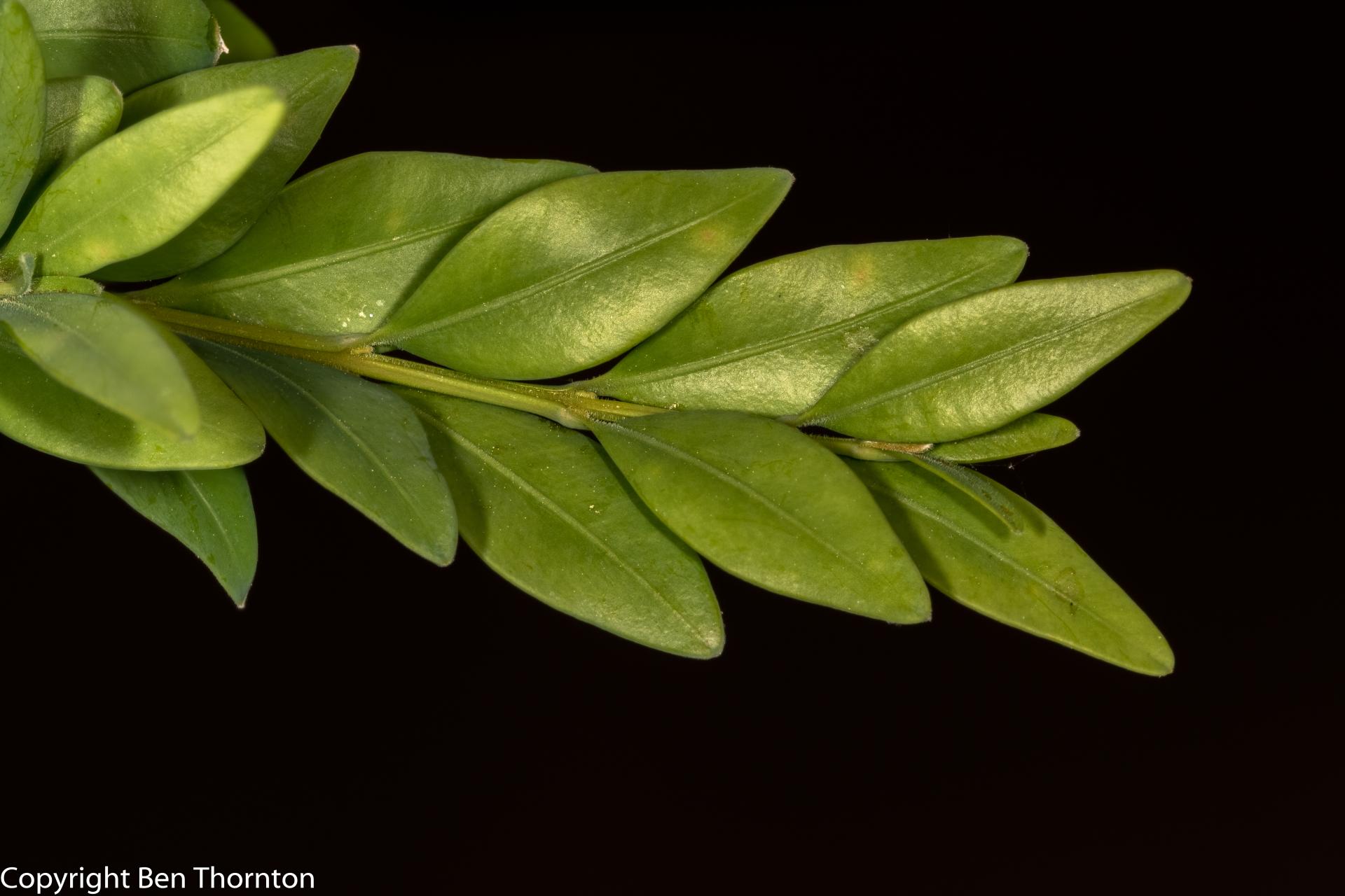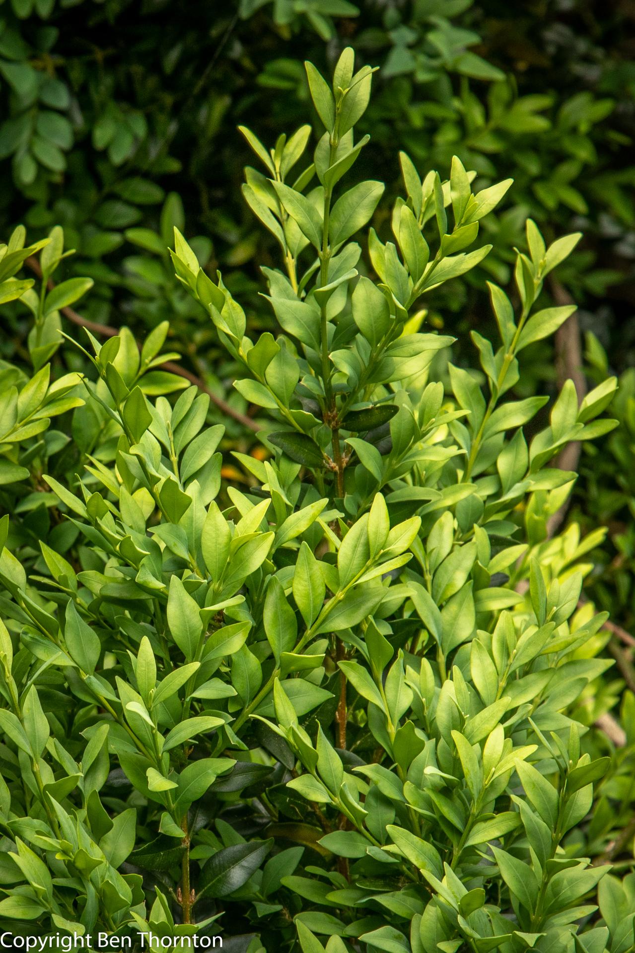 Buxus sempervirens, the common box, European box, orboxwood, is a species of flowering plant in the genus Buxus, native to western and southern Europe, northwest Africa, and southwest Asia, from southern England south to northern Morocco, and east through the northern Mediterranean region to Turkey.[1][2][3]Buxus colchica of western Caucasus and B. hyrcana of northern Iran and eastern Caucasus are commonly treated as synonyms of B. sempervirens.[4][5]