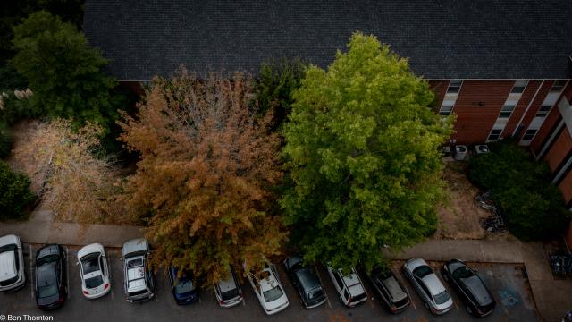 A characteristic shared by a few other oak species, and also some beeches and hornbeams, is the retention of leaves through the winter on juvenile trees, a natural phenomenon referred to as marcescence. Young trees under 6 m (20 ft) are often covered with leaves year-round, though the leaves die in the fall, remaining attached to the shoots until the new leaves appear in the spring. As with many other oak species, dead pin oak branches stay on the tree for many years.[6][7]