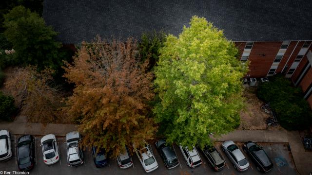 A characteristic shared by a few other oak species, and also some beeches and hornbeams, is the retention of leaves through the winter on juvenile trees, a natural phenomenon referred to as marcescence. Young trees under 6 m (20 ft) are often covered with leaves year-round, though the leaves die in the fall, remaining attached to the shoots until the new leaves appear in the spring. As with many other oak species, dead pin oak branches stay on the tree for many years.[6][7]