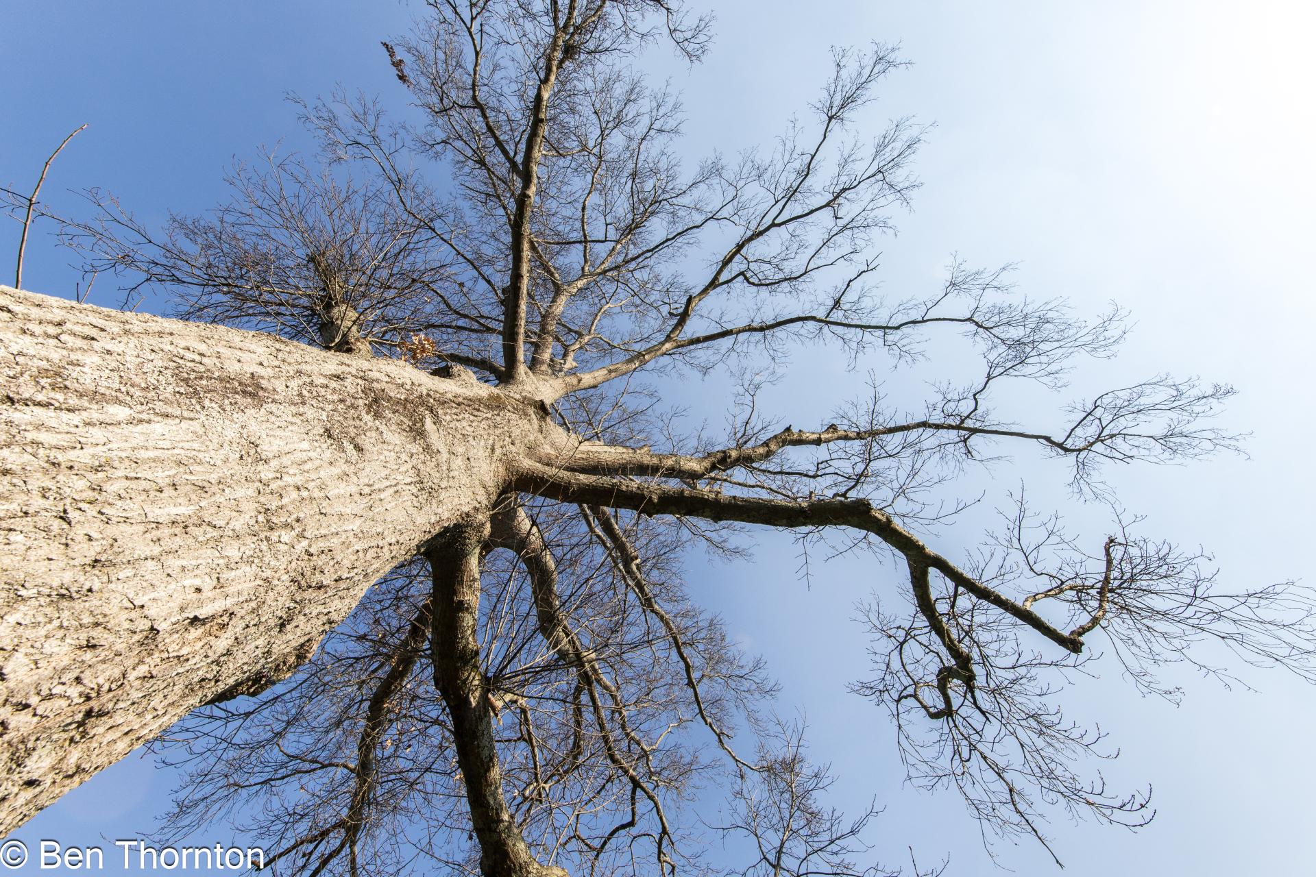 A characteristic shared by a few other oak species, and also some beeches and hornbeams, is the retention of leaves through the winter on juvenile trees, a natural phenomenon referred to as marcescence. Young trees under 6 m (20 ft) are often covered with leaves year-round, though the leaves die in the fall, remaining attached to the shoots until the new leaves appear in the spring. As with many other oak species, dead pin oak branches stay on the tree for many years.[6][7]