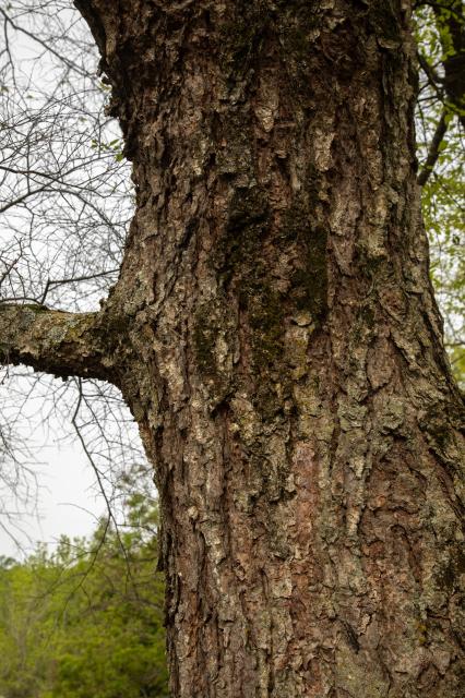 Bark characteristics of the river birch differ during its youth stage, maturation, and old growth. The bark of a young river birch can vary from having a salmon-pink to brown-gray tint and can be described as having loose layers of curling, paper thin scales. As the tree matures, the salmon-pink color is exchanged for a reddish-brown with a dark grey base color. The scales on a mature tree lack the loose curling and are closely pressed into thick, irregular plates. These scales are slightly separated from the trunk and can shift outward to the side. Once the river birch ages past maturity, the scales become thicker towards the base of the trunk and are divided in deep furrows.[3]