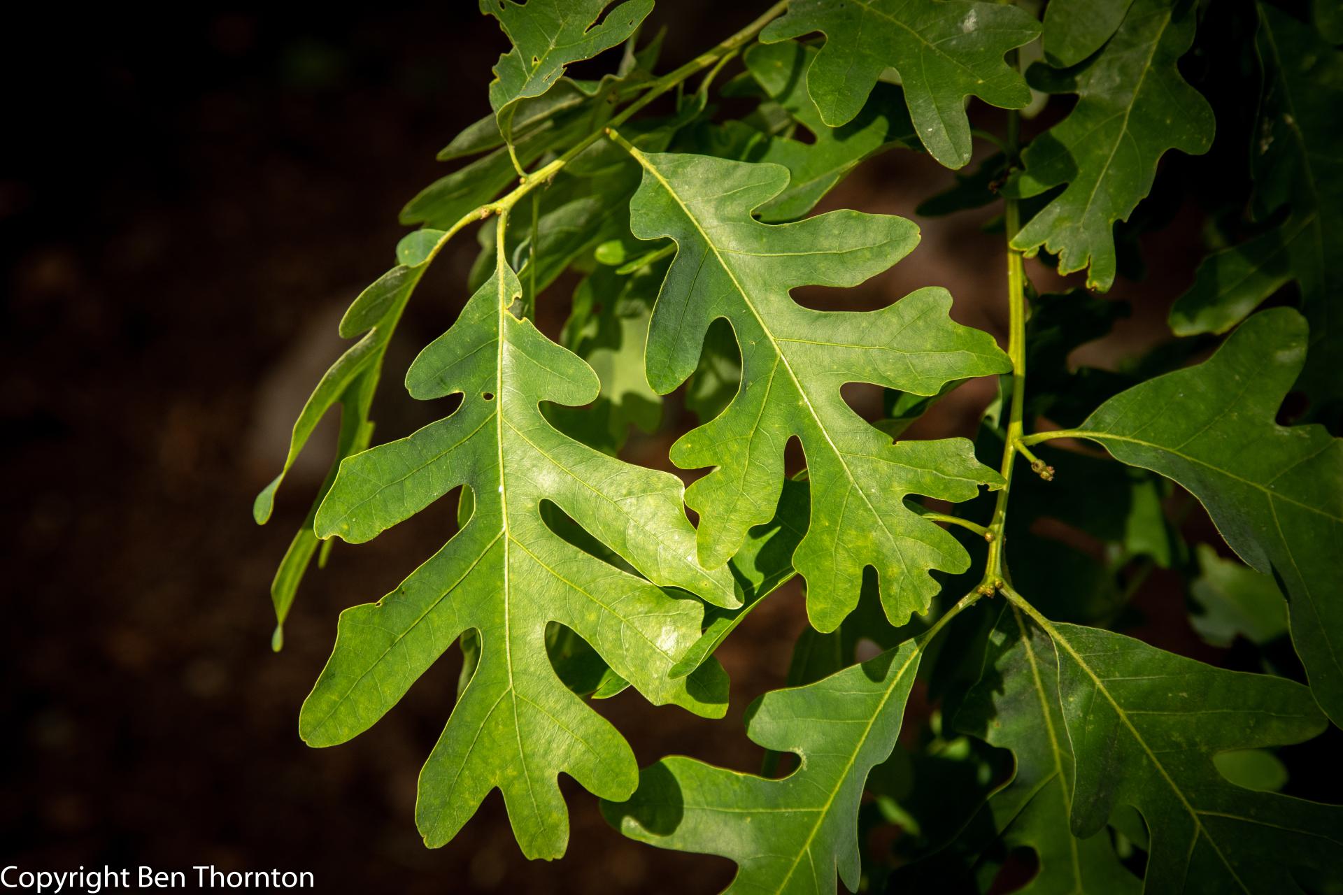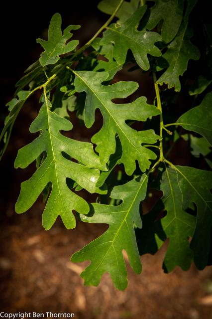 Although called a white oak, it is very unusual to find an individual specimen with white bark; the usual colour is a light grey. The name comes from the colour of the finished wood. In the forest it can reach a magnificent height and in the open it develops into a massive broad-topped tree with large branches striking out at wide angles.[5]