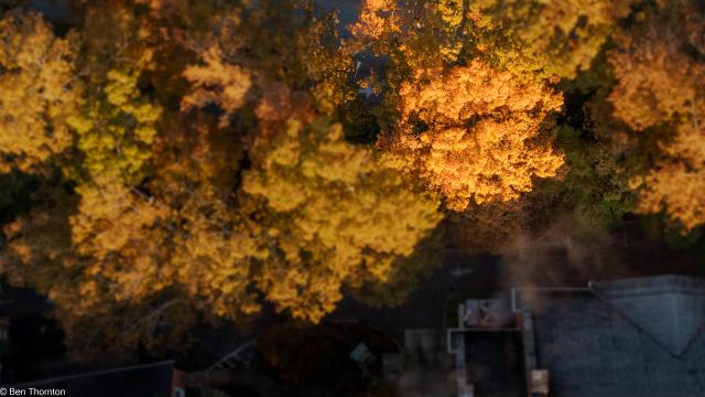 In spring, the young leaves are delicate, silvery pink, and covered with a soft blanket-like down. The petioles are short, and the clustered leaves close to the ends of the shoots are pale green and downy, resulting in the entire tree having a misty, frosty look. This condition continues for several days, passing through the opalescent changes of soft pink, silvery white, and finally, yellow green.[5][7] The leaves grow to be 127 to 216 millimetres (5–8+1⁄2 inches) long and 7 to 11.5 centimetres (2+3⁄44+1⁄2 in) wide and have a deep glossy green upper surface. They usually turn red or brown in autumn, but depending on climate, site, and individual tree genetics, some trees are nearly always red, or even purple in autumn. Some dead leaves may remain on the tree throughout winter until very early spring. The lobes can be shallow, extending less than halfway to the midrib, or deep and somewhat branching.