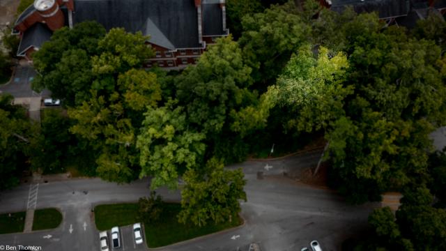 Liquidambar styraciflua is a medium-sized to large tree, growing anywhere from 15–20 m (50–70 ft) in cultivation and up to 45 m (150 ft) in the wild,[13] with a trunk up 60–90 cm (2–3 ft) in diameter, on average.[14] Trees may live to 400 years.[15] The tree is a symmetrical shape and crowns into an egg shape when the branches get too heavy after its first two years of cultivation.[8]