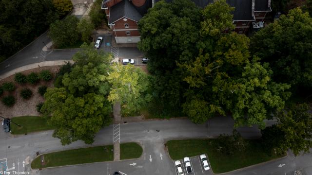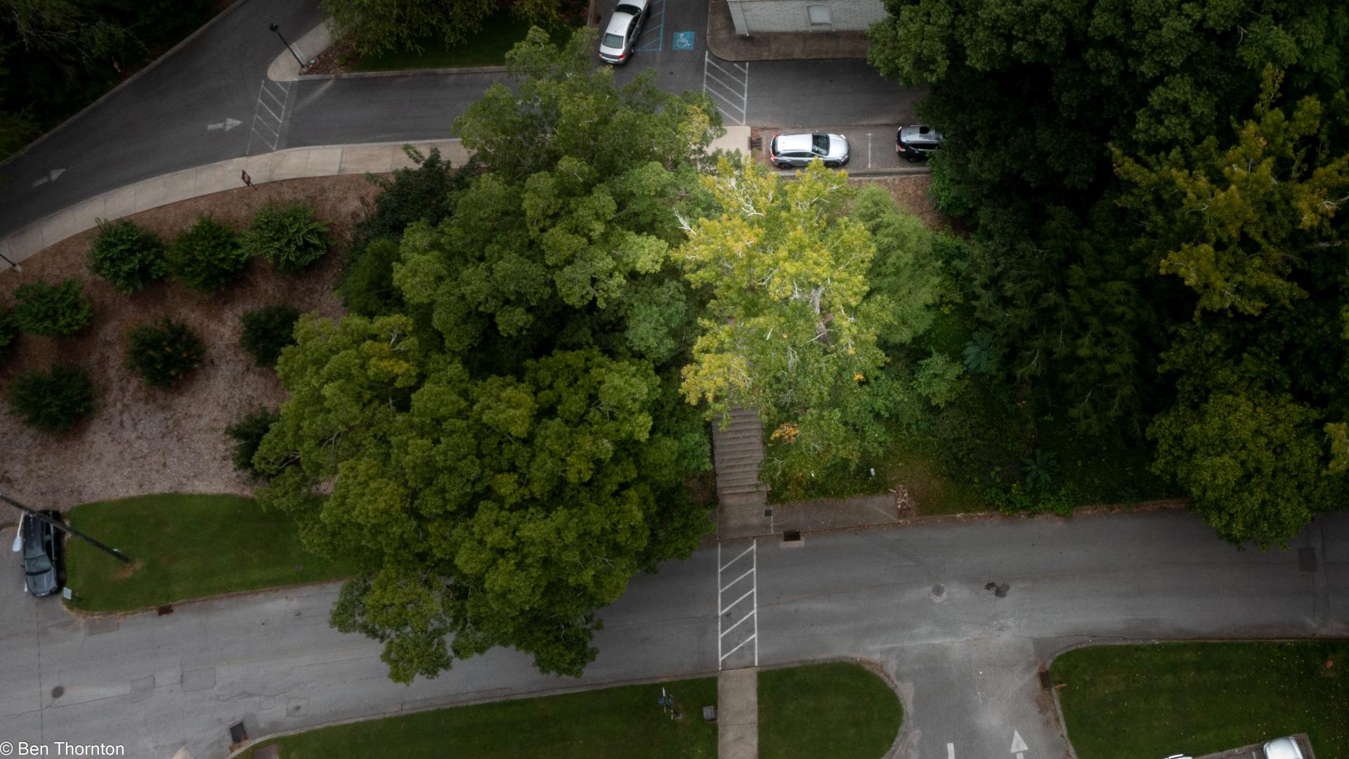 Liquidambar styraciflua is a medium-sized to large tree, growing anywhere from 15–20 m (50–70 ft) in cultivation and up to 45 m (150 ft) in the wild,[13] with a trunk up 60–90 cm (2–3 ft) in diameter, on average.[14] Trees may live to 400 years.[15] The tree is a symmetrical shape and crowns into an egg shape when the branches get too heavy after its first two years of cultivation.[8]