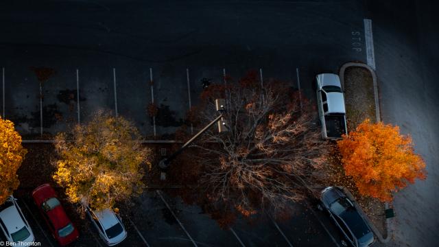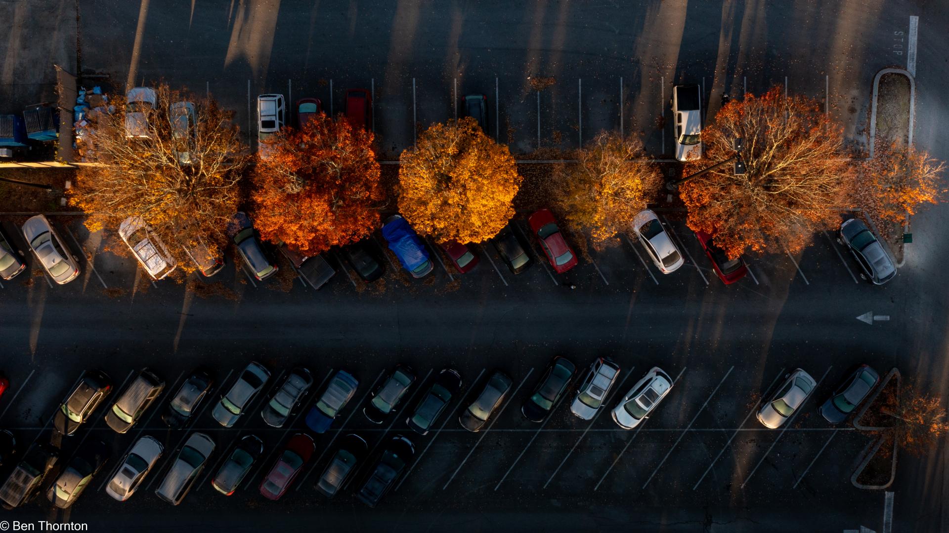 The LEAVES are deciduous, up to 20 cm (7.9 in) long and wide,[8] palmate, with five lobes and borne in opposite pairs. The basal lobes are relatively small, while the upper lobes are larger and deeply notched. In contrast with the angular notching of the SILVER MAPLE, however, the notches tend to be rounded at their interior. The fall color is often spectacular, ranging from bright yellow on some trees through orange to fluorescent red-orange on others. Sugar maples also have a tendency to color unevenly in fall. In some trees, all colors above can be seen at the same time. They also share a tendency with RED MAPLES for certain parts of a mature tree to change color weeks ahead of or behind the remainder of the tree. The leaf buds are pointy and brown-colored. The recent year's growth twigs are green, and turn dark brown.[CITATION NEEDED]