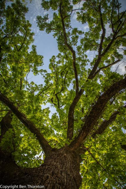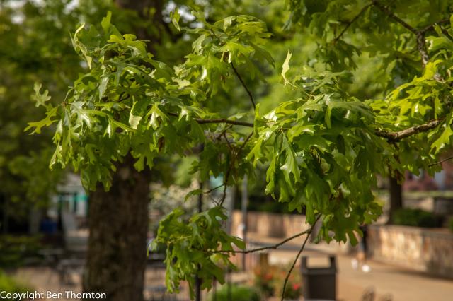 Post oak is a relatively small tree, typically 10–15 metres (33–49 feet) tall and trunk 30–60 centimetres (12–24 inches) in diameter, though occasional specimens reach 30 m (98 ft) tall and 140 cm (55 in) in diameter. The leaves have a very distinctive shape, with three perpendicular terminal lobes, shaped much like a Maltese cross. They are leathery, and tomentose (densely short-hairy) beneath. The branching pattern of this tree often gives it a rugged appearance. The acorns are 1.5–2 cm (5⁄83⁄4 in) long, and are mature in their first summer.[4]