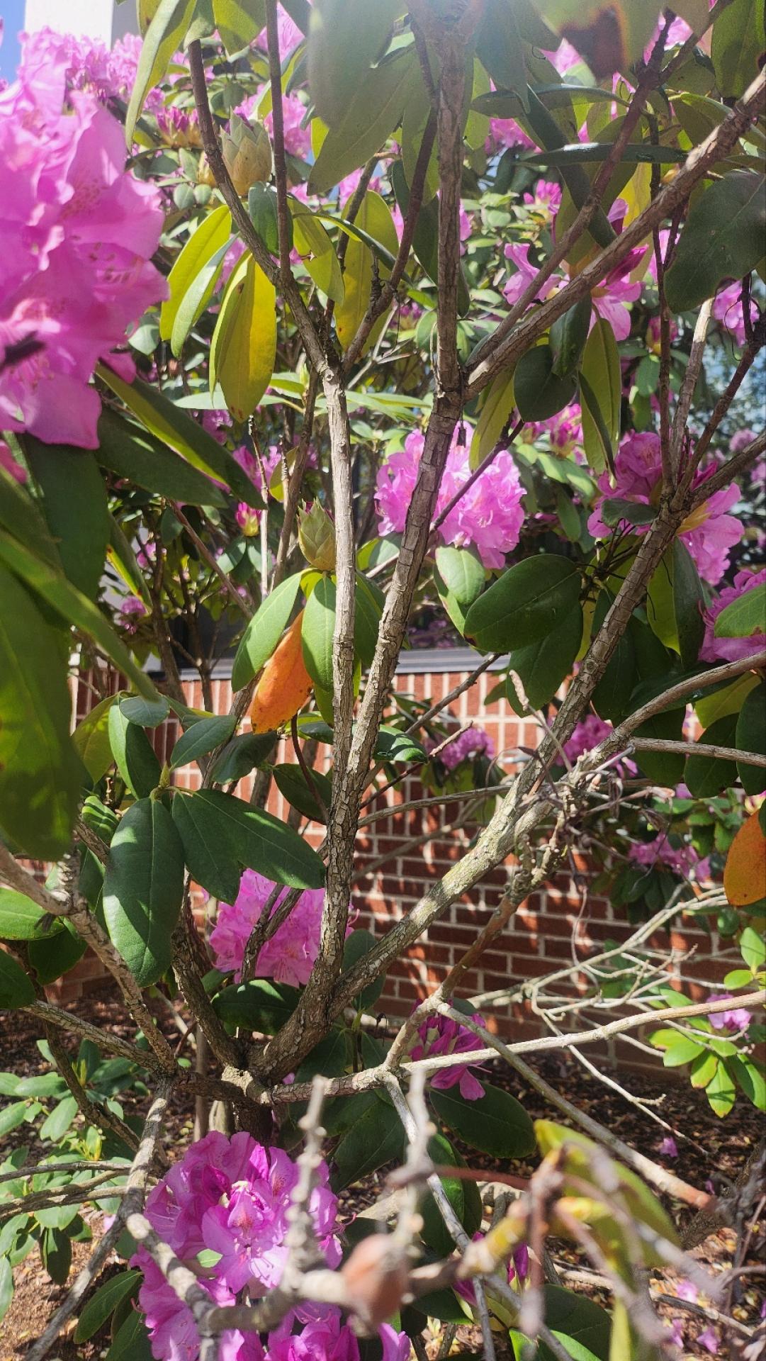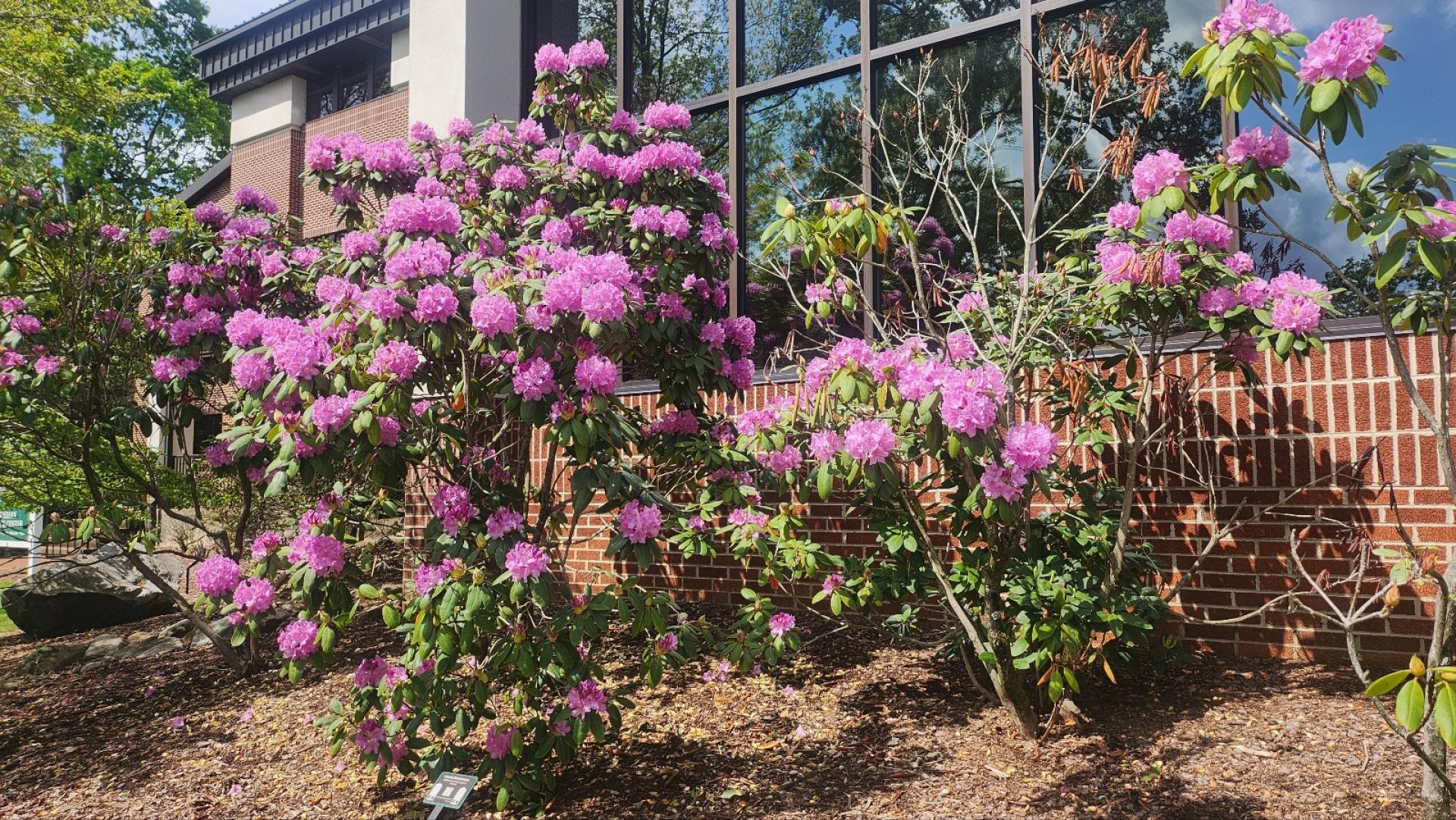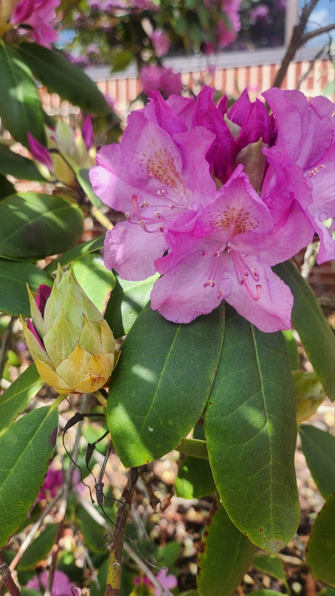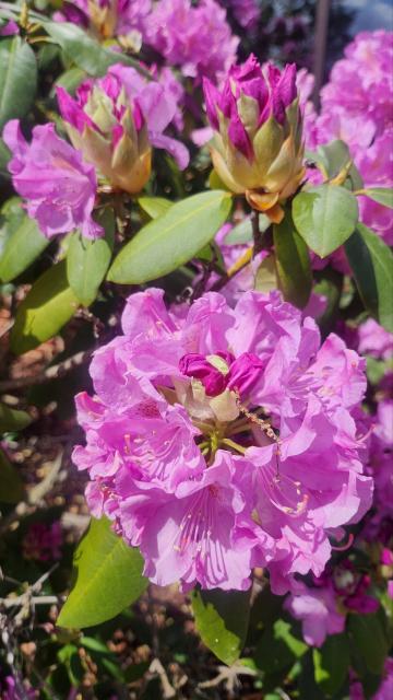 'Boursault' is a dense, upright, evergreen rhododendron. It has violet buds that open into lavender flowers with some reddish or pale brown spots. It will grow 6 feet tall in 10 years but eventually can grow to 10-15 feet tall.