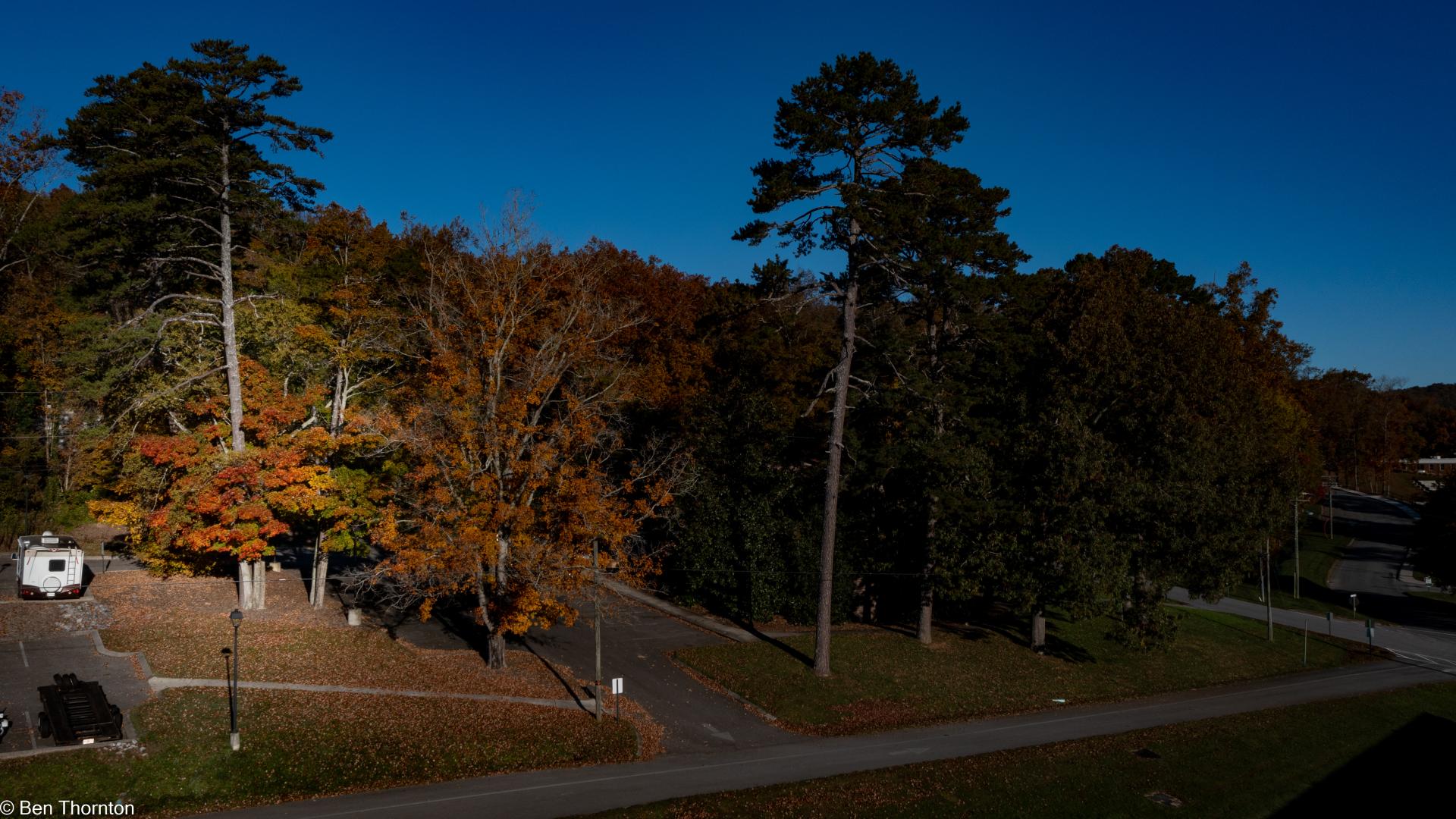 The LEAVES are deciduous, up to 20 cm (7.9 in) long and wide,[8] palmate, with five lobes and borne in opposite pairs. The basal lobes are relatively small, while the upper lobes are larger and deeply notched. In contrast with the angular notching of the SILVER MAPLE, however, the notches tend to be rounded at their interior. The fall color is often spectacular, ranging from bright yellow on some trees through orange to fluorescent red-orange on others. Sugar maples also have a tendency to color unevenly in fall. In some trees, all colors above can be seen at the same time. They also share a tendency with RED MAPLES for certain parts of a mature tree to change color weeks ahead of or behind the remainder of the tree. The leaf buds are pointy and brown-colored. The recent year's growth twigs are green, and turn dark brown.[CITATION NEEDED]