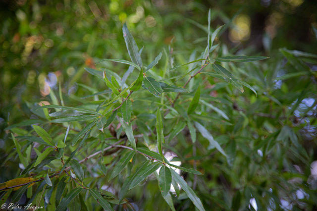It is a medium-sized tree growing to 20–30 meters (65–100 feet) tall (exceptionally to 39 m, 128 ft), with a trunk up to 1–1.5 m (3+1⁄2–5 ft) in diameter (exceptionally 2 m or 6+1⁄2 ft). It is distinguished from most other oaks by its leaves, which are shaped like willow leaves, 5–12 centimeters (2–4+3⁄4 inches) long and 1–2.5 cm (3⁄8–1 in) broad with an entire (untoothed and unlobed) margin; they are bright green above, paler beneath, usually hairless but sometimes downy beneath. The fruit is an acorn, 8–12 millimeters (5⁄16–15⁄32 in) long, and almost as wide as long, with a shallow cup; it is one of the most prolific producers of acorns.[2] The tree starts acorn production around 15 years of age, earlier than many oak species.[3]