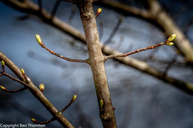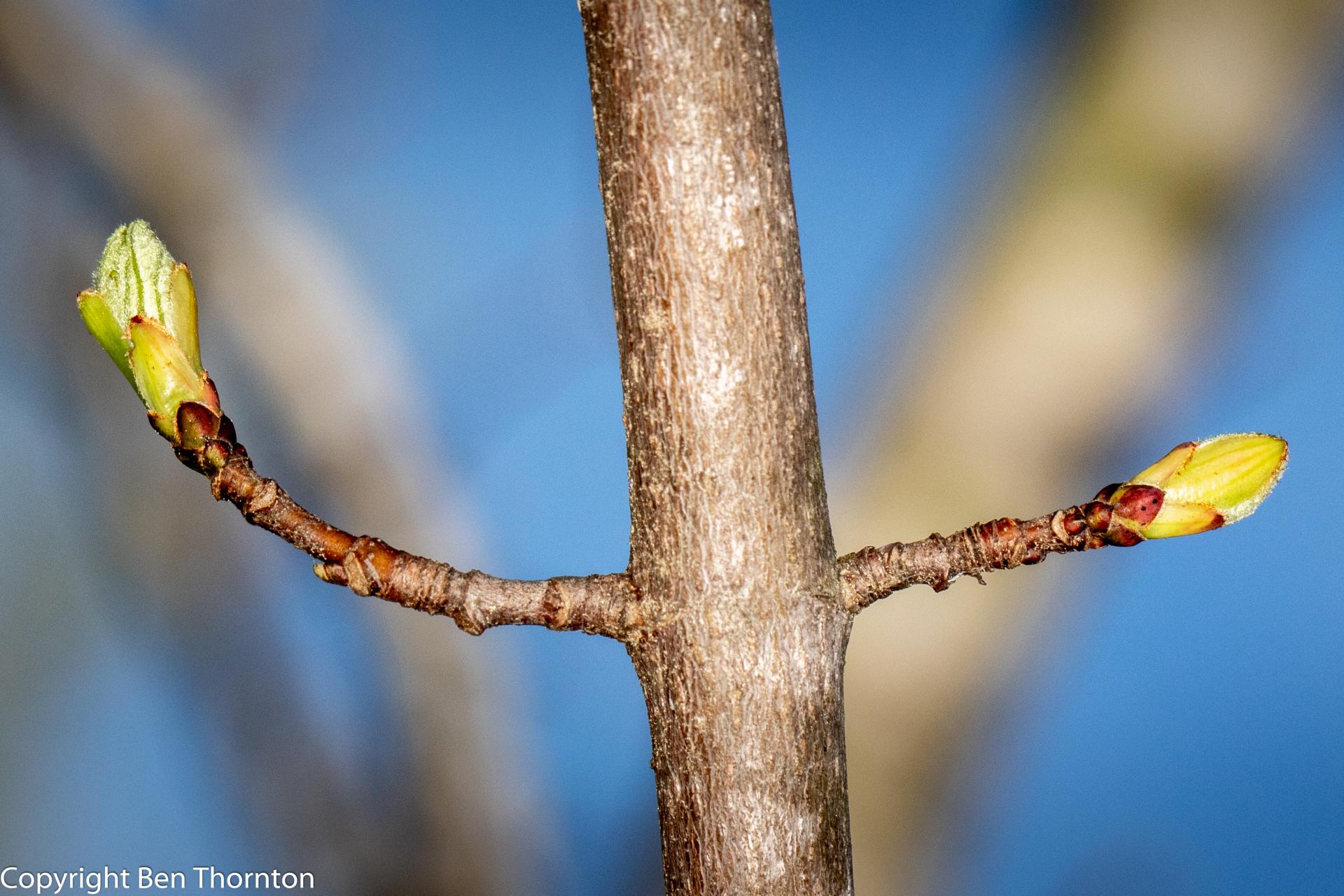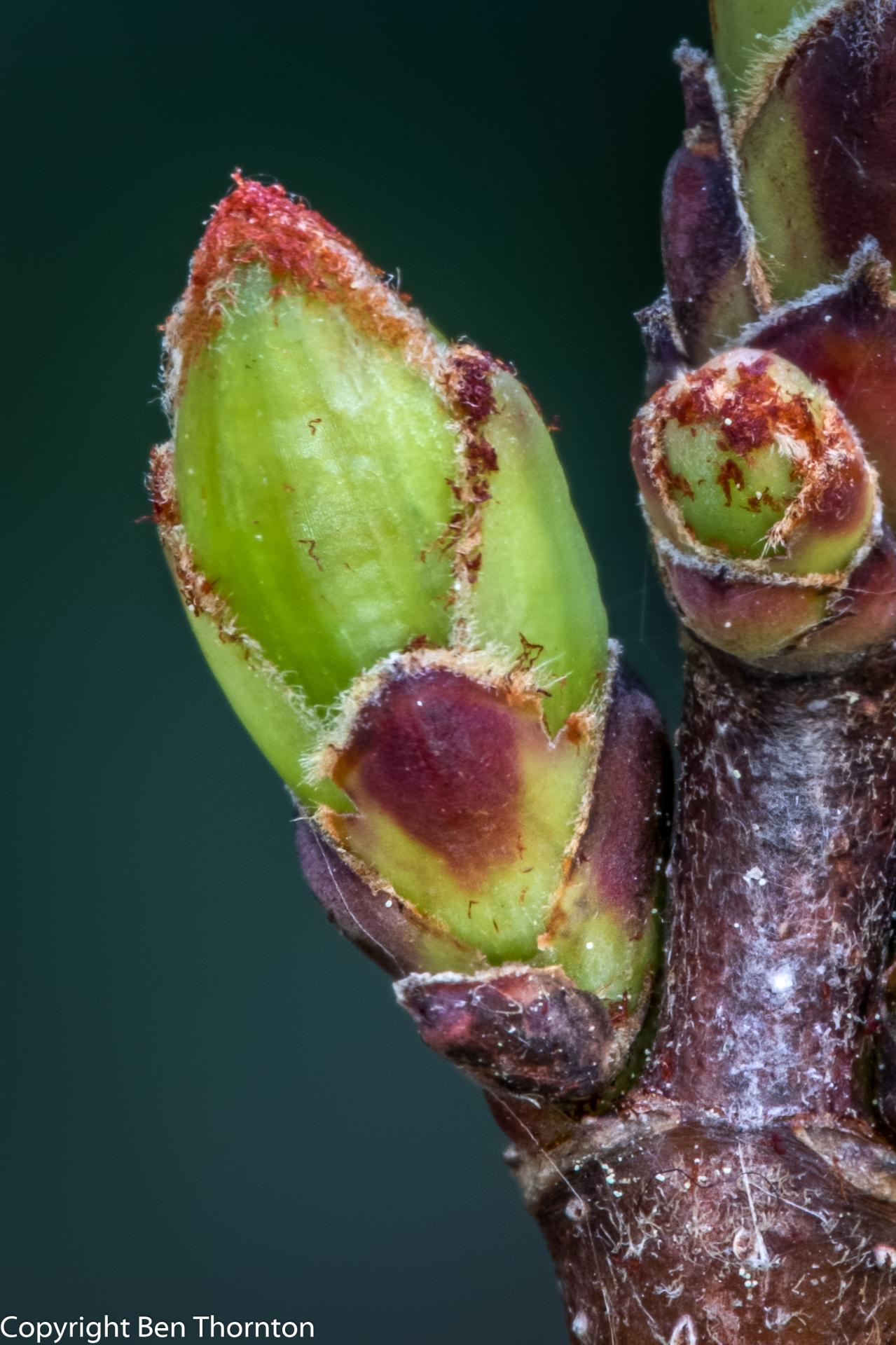 The TWIGS of the red maple are reddish in color and somewhat shiny with small LENTICELS. Dwarf shoots are present on many branches. The BUDS are usually blunt and greenish to reddish in color, generally with several loose scales. The lateral buds are slightly stalked, and in addition, collateral buds may be present, as well. The buds form in fall and winter and are often visible from a distance due to their large size and reddish tint. The leaf scars on the twig are V-shaped and contain three bundle scars.[6]
