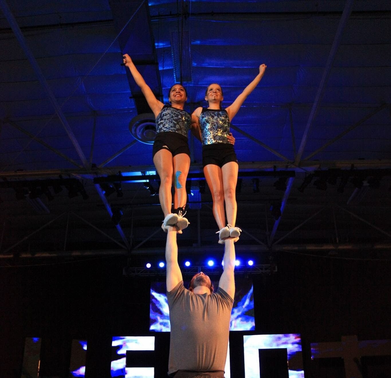 My favorite move is a move I recently just got. It’s a pair move called a double cupie. It’s where you have two girls, one standing on each hand, and you raise them both over your head and they hold on to each other’s shoulders.